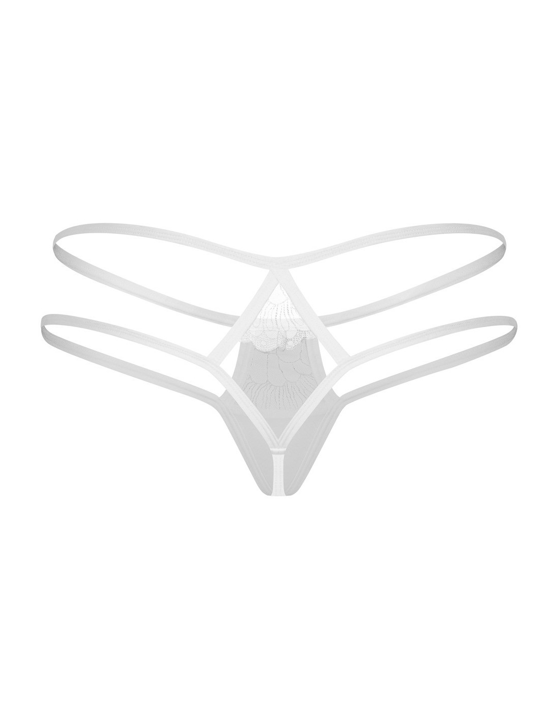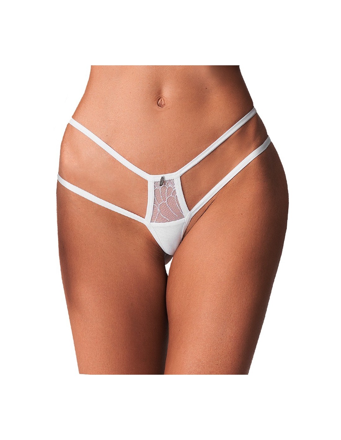 Perizoma bianco enfatizzante Arrowel di Obsessive con pizzo fine e ricamato e un piccolo dettaglio decorativo sul davanti. Anche il taglio a diamante sul retro è decorato con pizzo. È dotato di morbide fasce elastiche per una vestibilità confortevole.