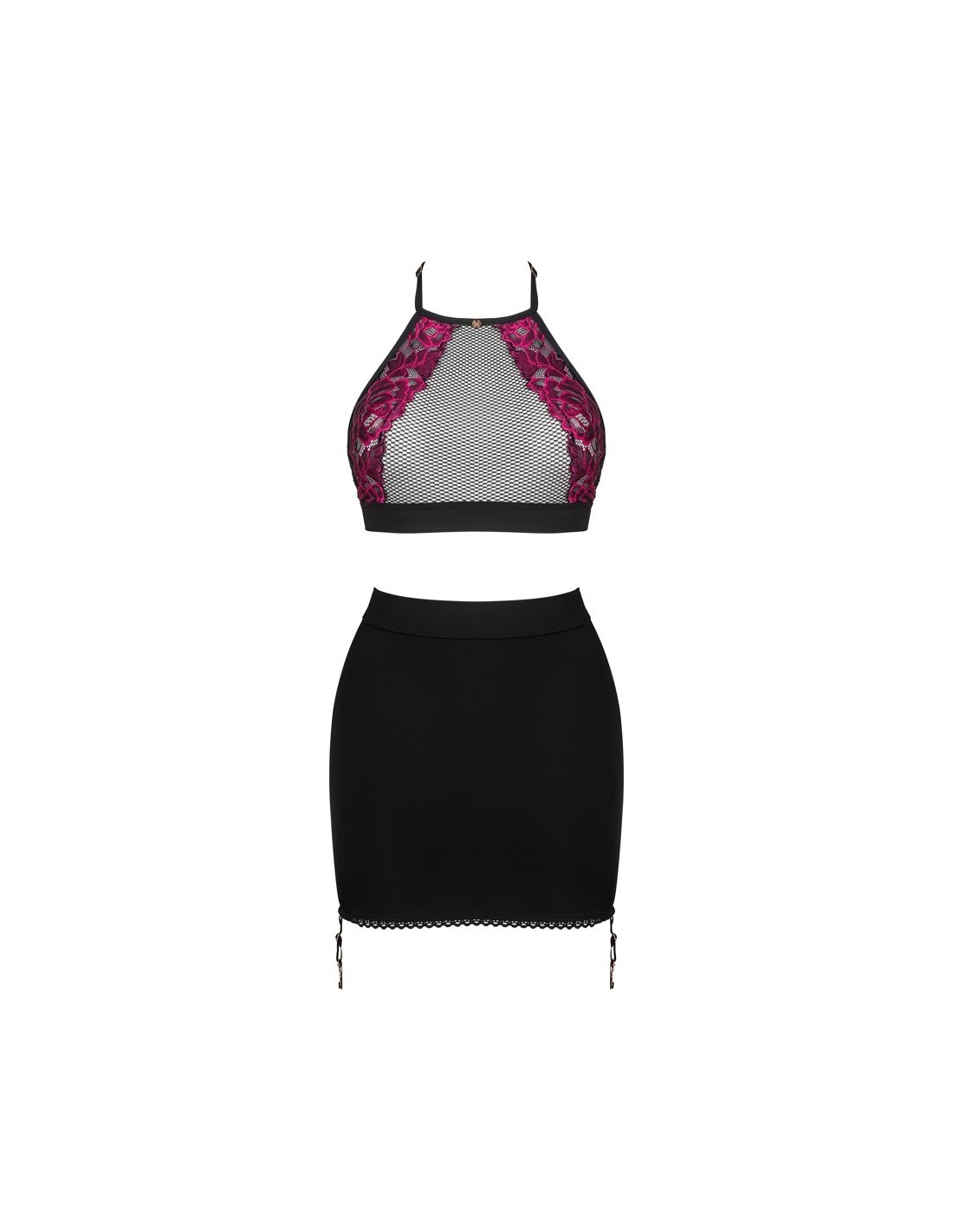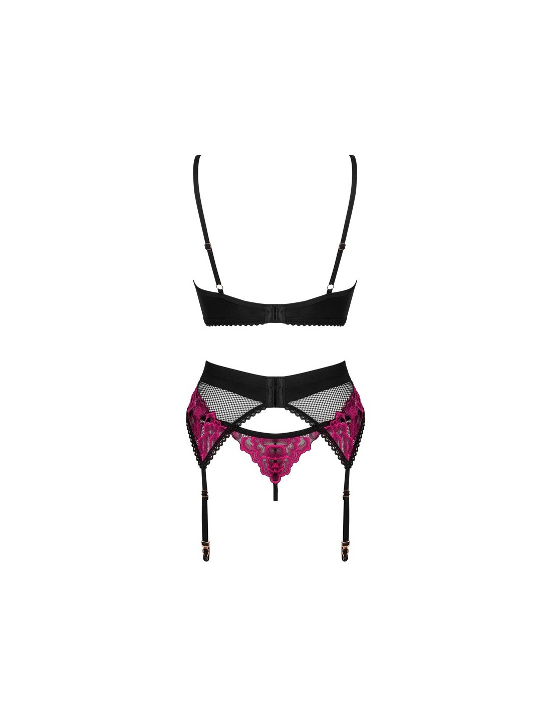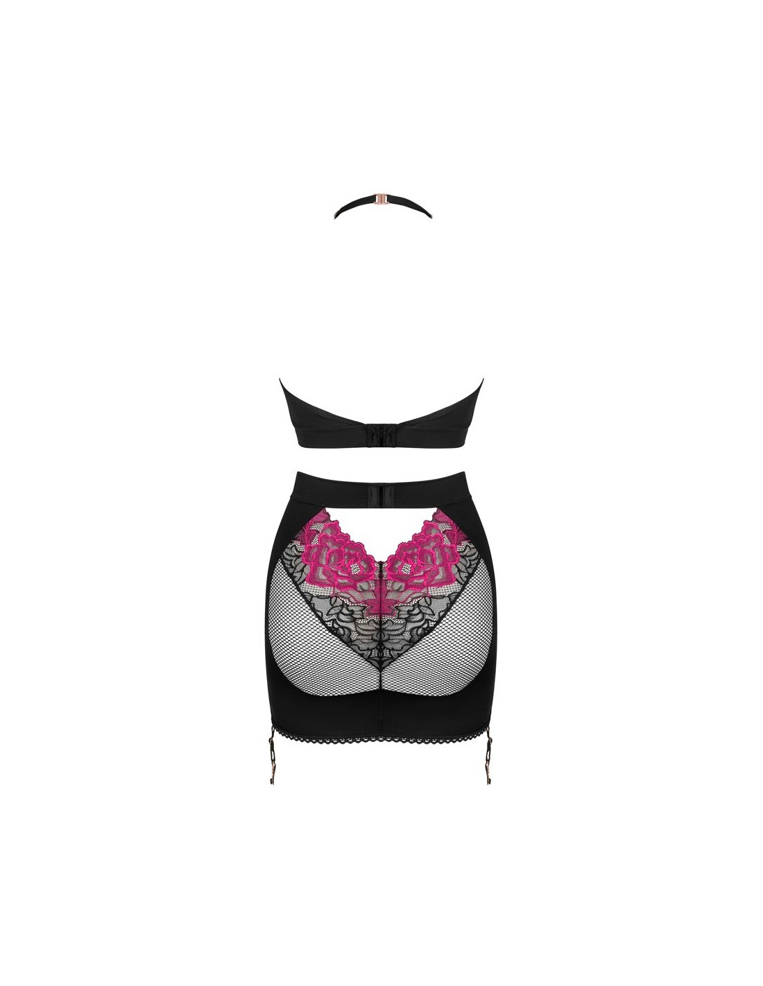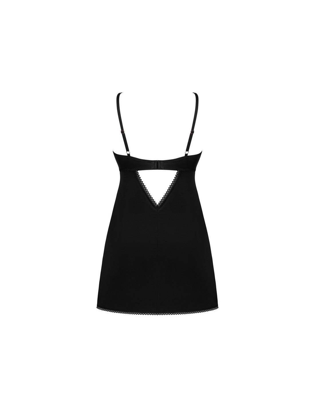 La seducente vestaglia Rosenty con perizoma di Obsessive unisce l'eleganza classica a un tocco erotico. Parte del reggiseno con ornamento floreale a forma di rosa e rete fine. Il ferretto fornisce un buon sostegno. La parte posteriore presenta un taglio decorativo che arriva fino ai glutei.