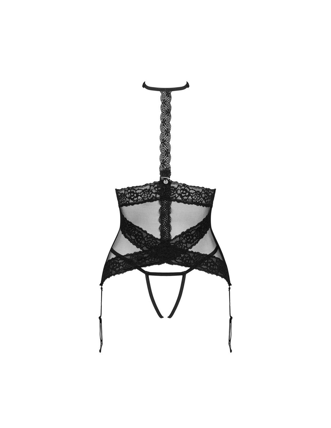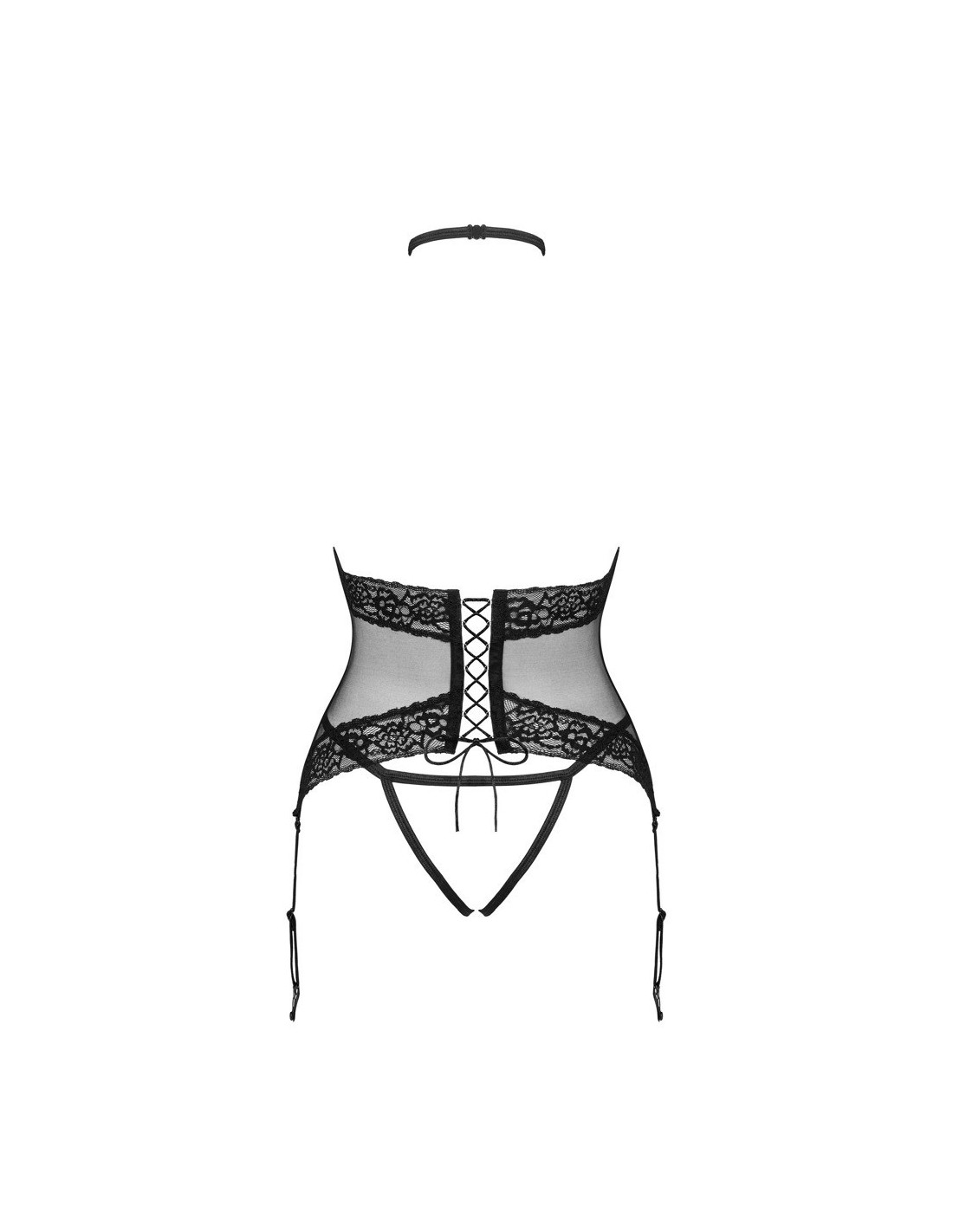You already know that it’s about to get very hot in the bedroom with this corset! The body-revealing cut and sensual, geometric patterns attract attention. The lacing on the back is an extremely convenient solution, and the open thong encourages pleasant moments with your significant other. The sexy choker is the unique element of the whole that beautifully adorns the neck and cleavage.