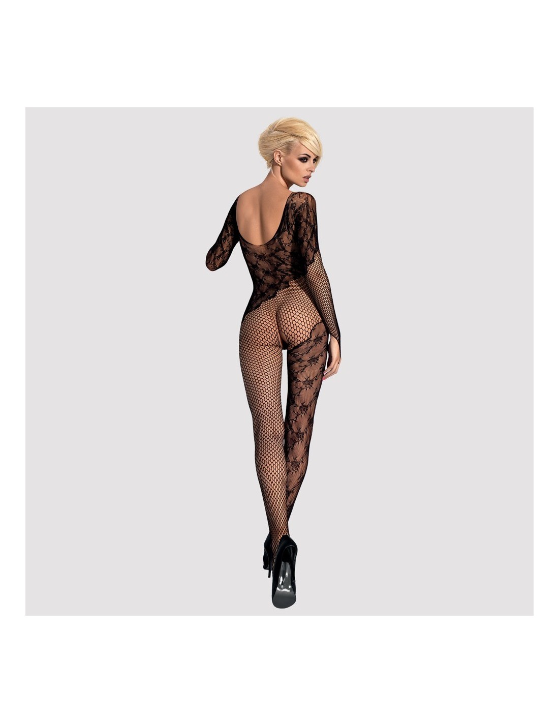 La tuta F210 di Obsessive ha un affascinante look wow: motivi floreali si alternano a reti sensuali e il cavallo aperto apre a momenti di intimità. Scollo profondo, può essere indossato anche a righe sulle spalle. Maniche lunghe con passanti per le dita. Con piede. Si abbina bene, ad esempio, a una gonna o a un hot pants.
