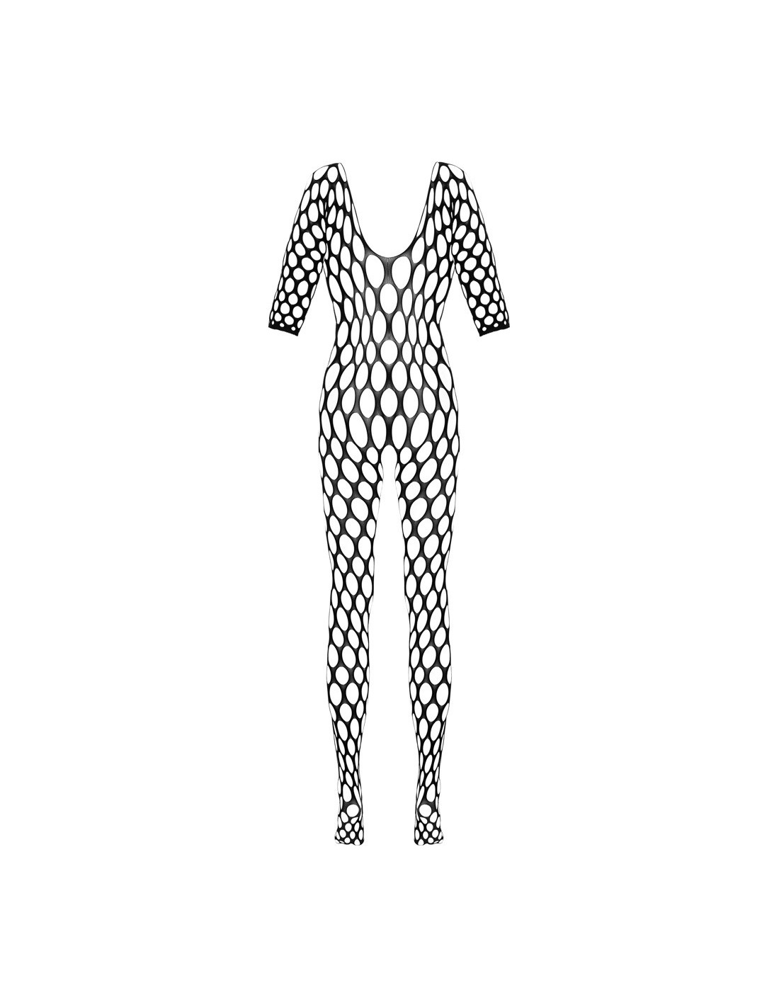 Catsuit nera a maniche lunghe senza cavallo di FANTASY by Cottelli Collection con un design a buchi rivelatore. Con un profondo taglio rotondo sulla schiena. Seducente apertura sul cavallo. Piedi con punta rinforzata. Tutto senza cuciture e altamente elasticizzato per il massimo comfort.