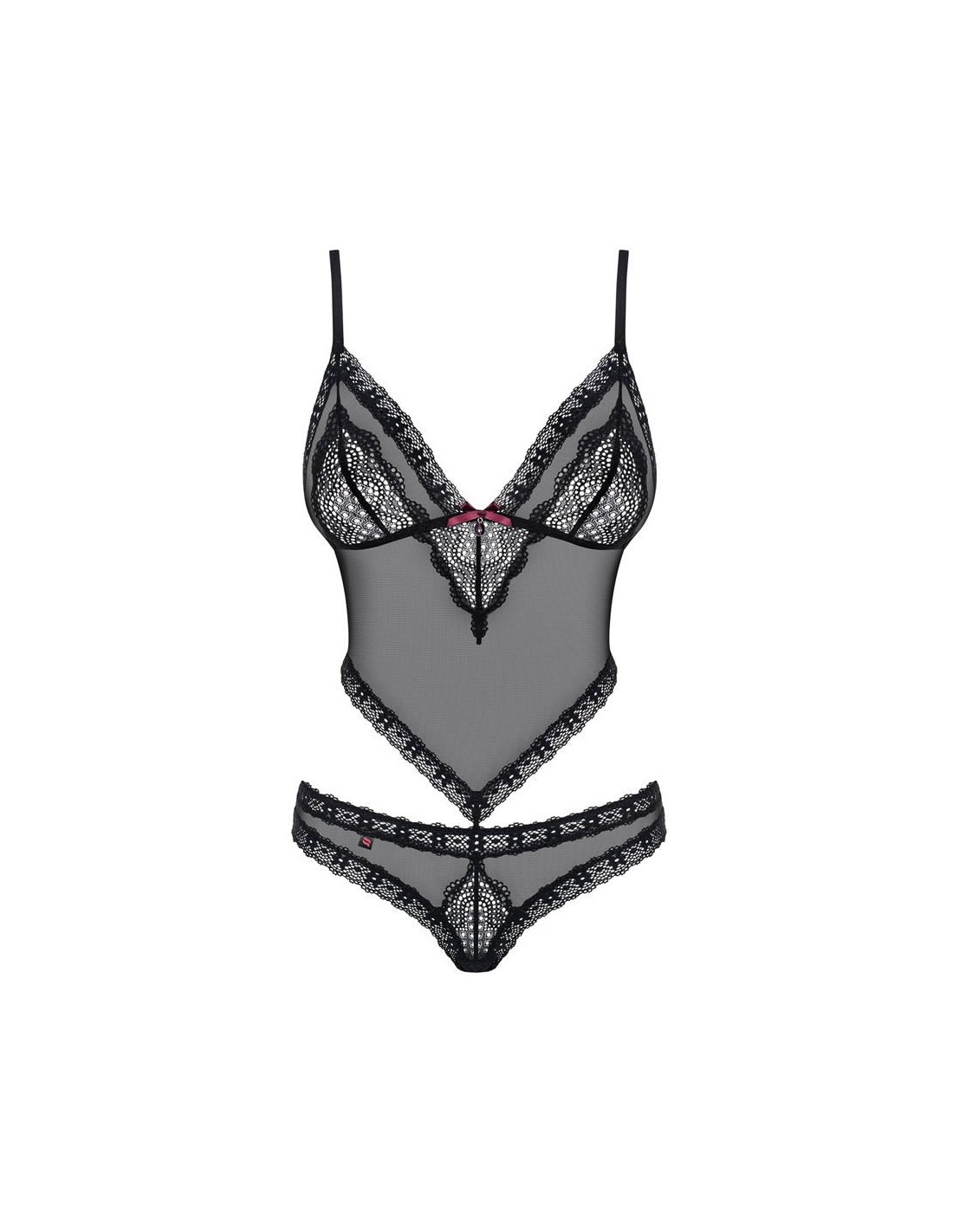 Look at the incredibly tempting design! This teddy will take a special place in your wardrobe. Now imagine what it does to your body. Sexy shape, accentuated curves – aww, yes! Together with seductive motifs and violet details it’s a sex appeal bomb! Sooo hard to resist. Check it out: - amazing teddy – top connected with panties - sheer mesh - adjustable straps and multi-stage closure - decorative, lace inserts - beautiful, purple bow and glossy stone - slanting design – partly uncovered and optically slimmed body! - uncovered back and accentuated derriere - nice to touch, stretchable fabrics (94% polyamide, 6% elastane)