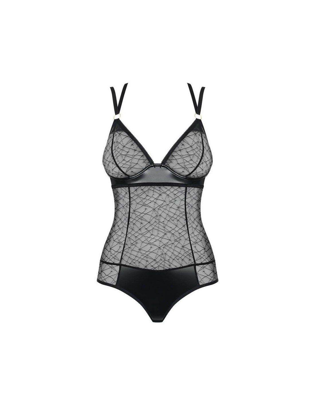 Put on this alluring teddy and be proud of your fantastically emphasized curves! You’ll love this feeling and he’ll love your amazing look. What next? Well, you already know… The atmosphere in your bedroom will be incredibly hot! Discover all exciting details: - sensual teddy made out of see-through mesh - subtle pattern adorns the body - “wet look” fabric gives a lot of sex appeal - adjustable straps and multistage closure on the back – perfect fitting guaranteed - additional straps crossed on the back - cups with underwires placed in one tunnel – bust looks fuller and is boosted - sexy cut on the back - comfortable, adjustable closure in crotch - golden circles add piquancy - black seams emphasize female curves - very soft and perfectly elastic fabric (90% polyamide, 10% elastane)