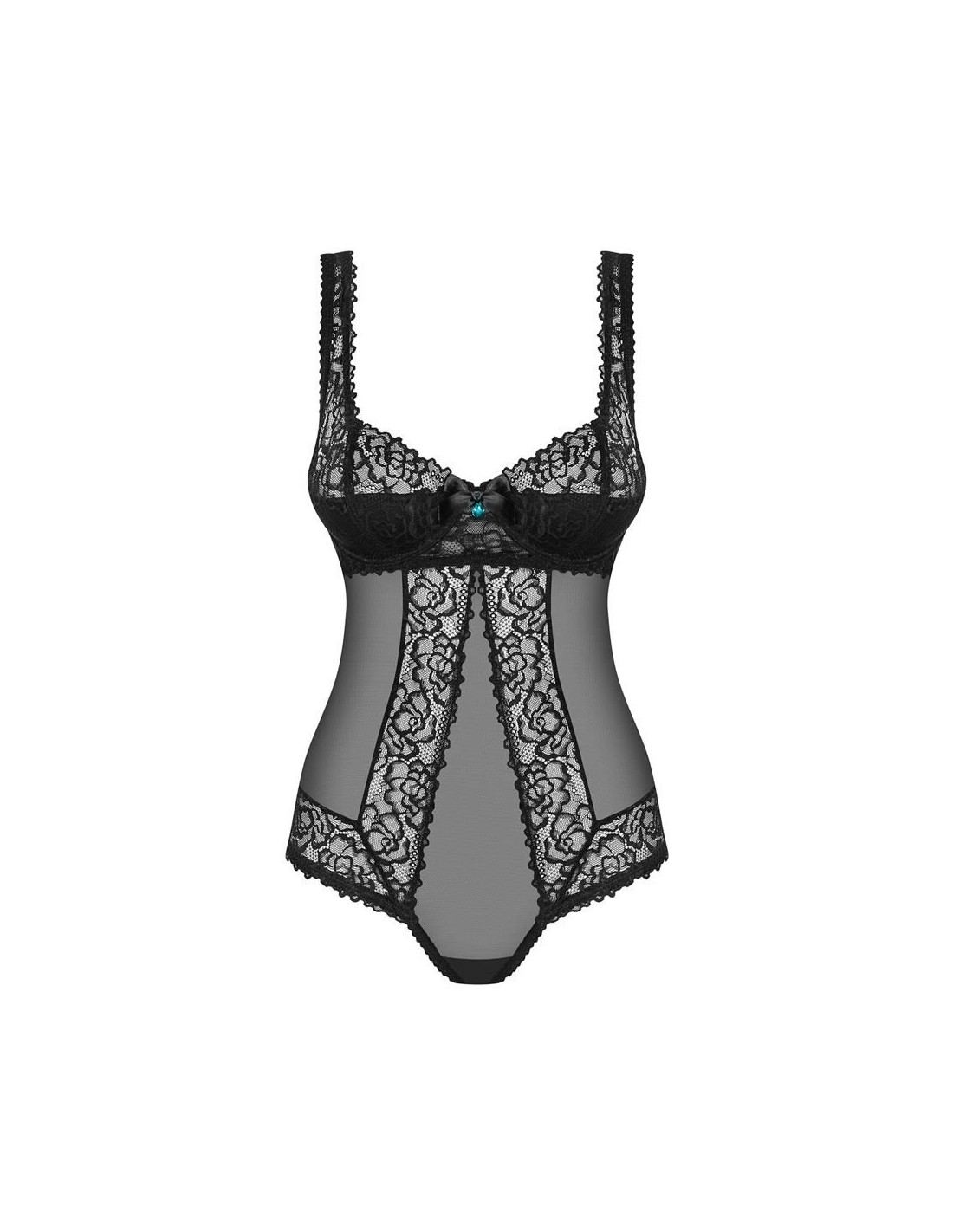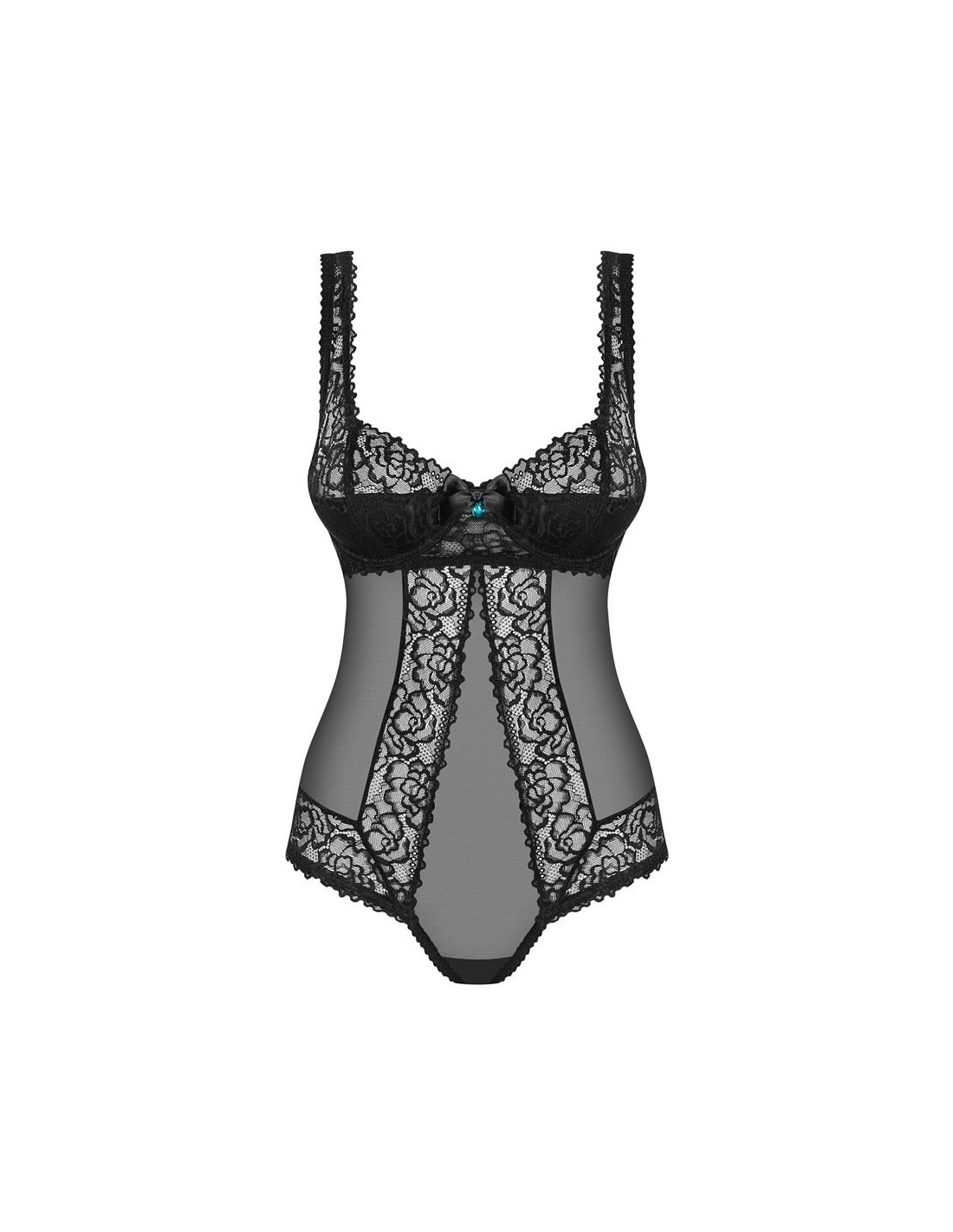 Vuoi prepararti per una notte indimenticabile con il tuo amante? Scopri un teddy davvero favoloso. Sarà bello e sexy su di te! Buon umore ed esperienze incredibilmente piacevoli: questo è ciò che ti piacerà. Insieme al tuo amante! Vedi tutti i dettagli: - teddy fantastico e molto femminile - spalline regolabili - facile da regolare - chiusura multistadio sul retro - pieno controllo sulla vestibilità - ferretto, imbottito, coppe di pizzo - aspetto fantastico - il pizzo sottolinea le curve sexy - taglio allettante sul retro - elegante ornamento sulla zona del busto e sopra il derriere - fiocchi in raso e pietre turchesi - tessuto Multistretch delicato e superelastico - comfort: 90% poliammide, 10% elastan