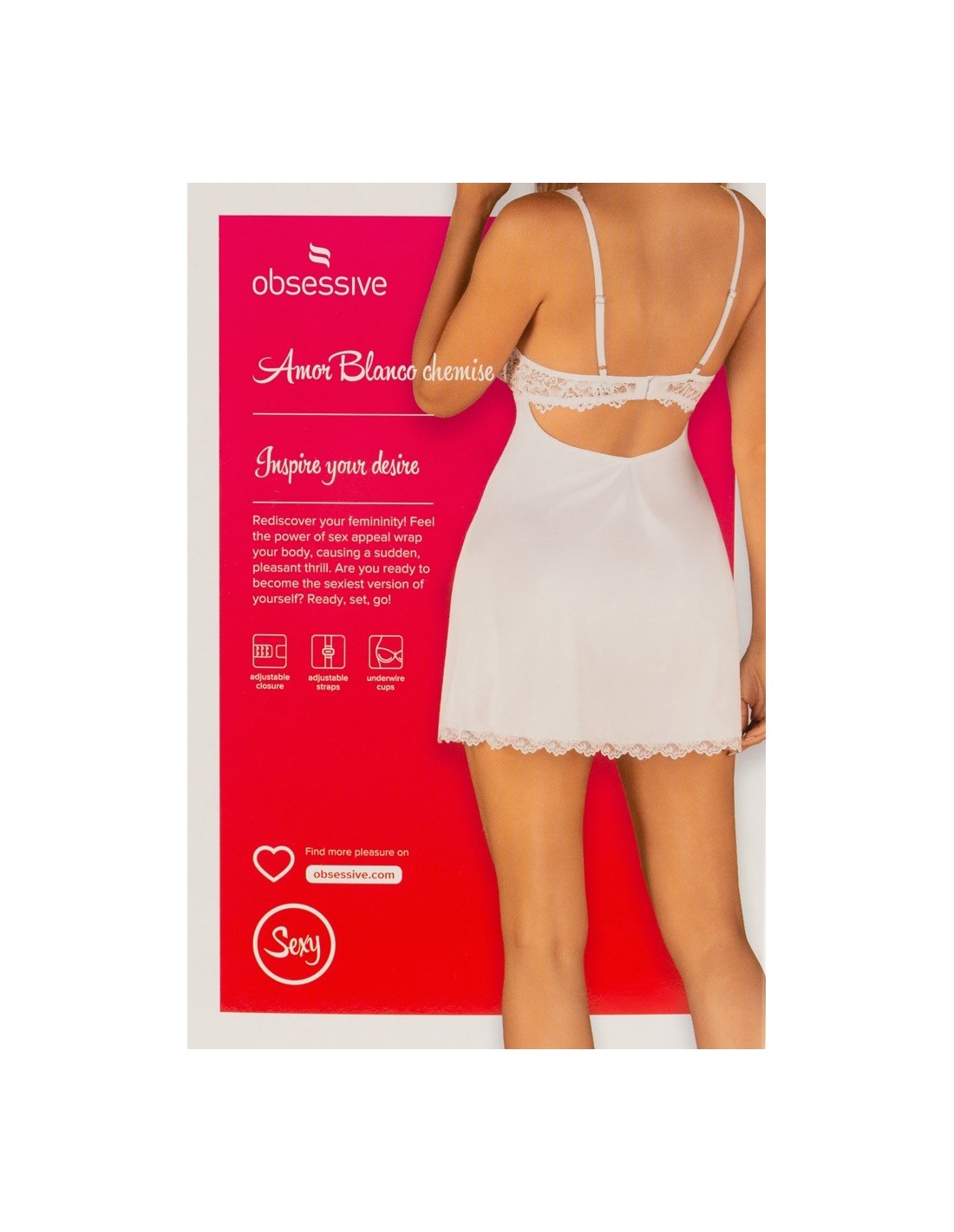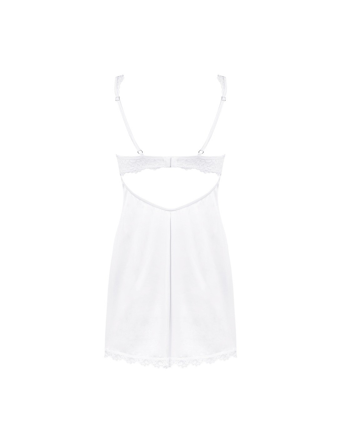 Abito intimo aderente e perizoma nel set Amor Blanco di Obsessive. Top interamente in pizzo e con ferretti a coppa, anche l'orlo è decorato con pizzo fine. Morbido ed elasticizzato su tutto il corpo per il massimo comfort. Con chiusura a gancio sul retro. Le spalline in pizzo sono regolabili. La semplice e bella stringa completa questo look seducente.