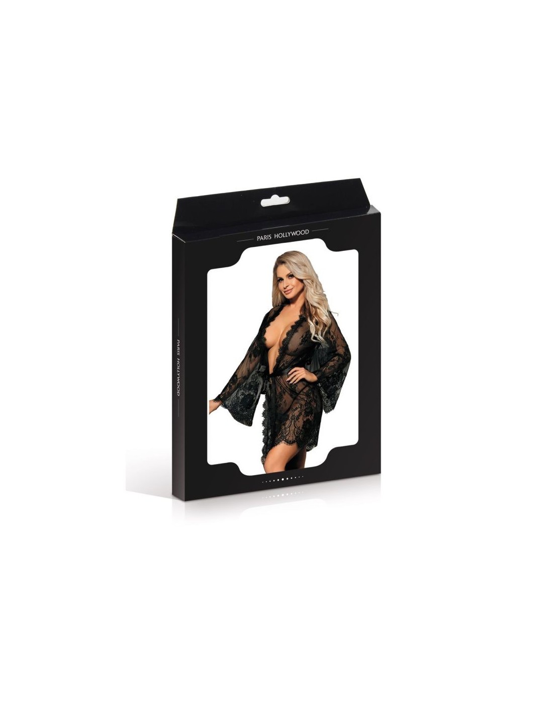 Questo négligé nero in pizzo, una lingerie sexy che ha le carte in regola per sedurre. Con la cintura in raso e il perizoma, un seducente négligé nero con un magnifico pizzo con motivi floreali e maniche lunghe e ampie. - Peso 163 g - 95% poliestere 5% elastan Dimensioni scatola in mm: 270 x 195 x 25