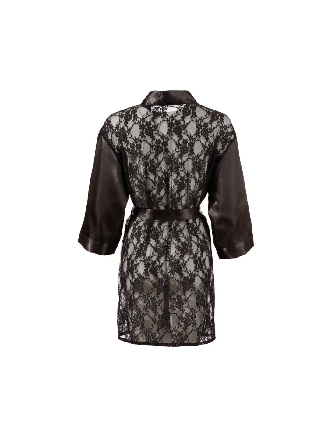 The short Kimono from kissable ist made of delicate, red powernet and elegant red lace with gold-shimmering details. Slightly translucent, it barely covers the bottom and whets the appetite for more. Soft and stretchy for high comfort. With quarter sleeves and satin band to tie.