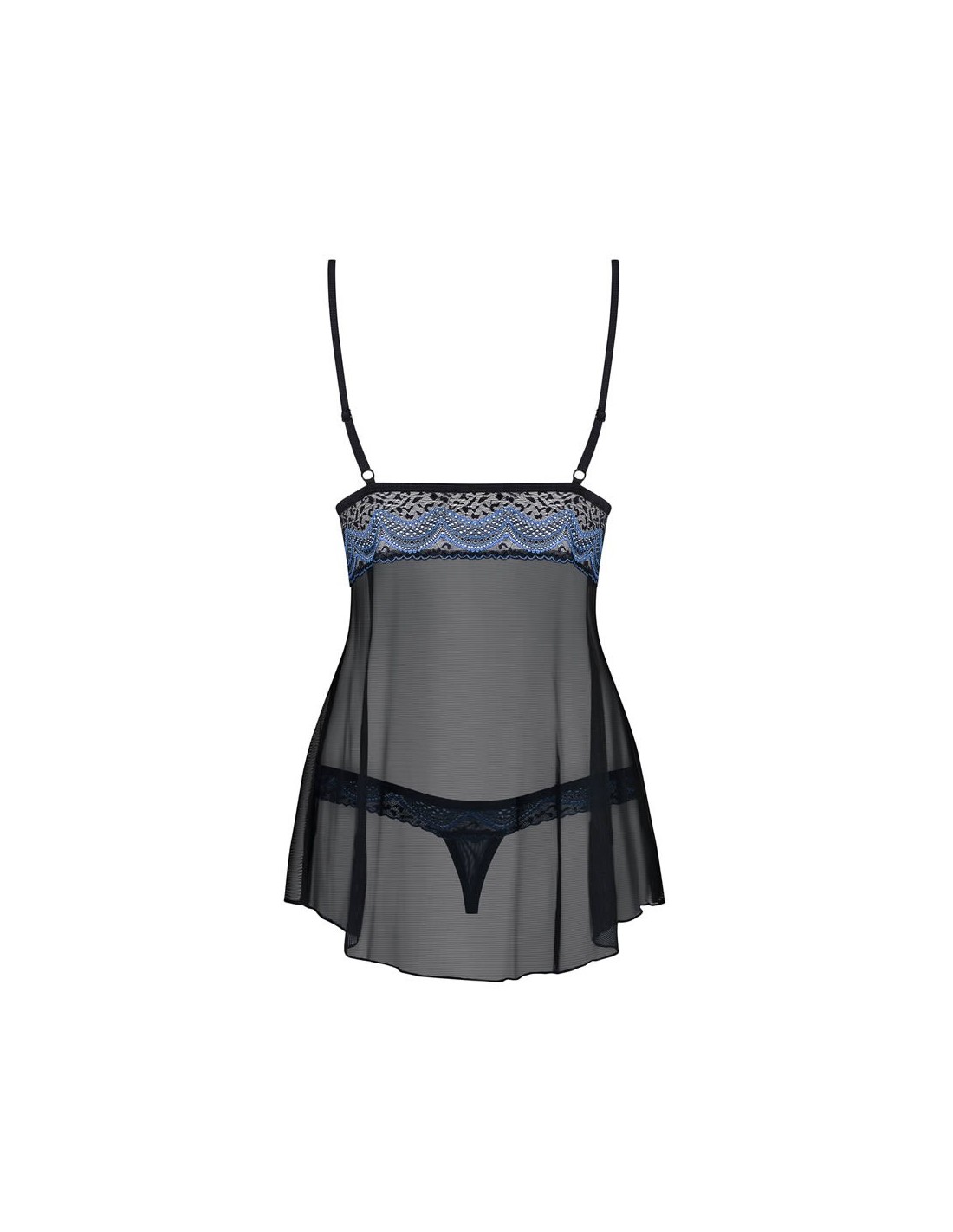 - lacy top of the babydoll with sapphire adornment and tiny spots