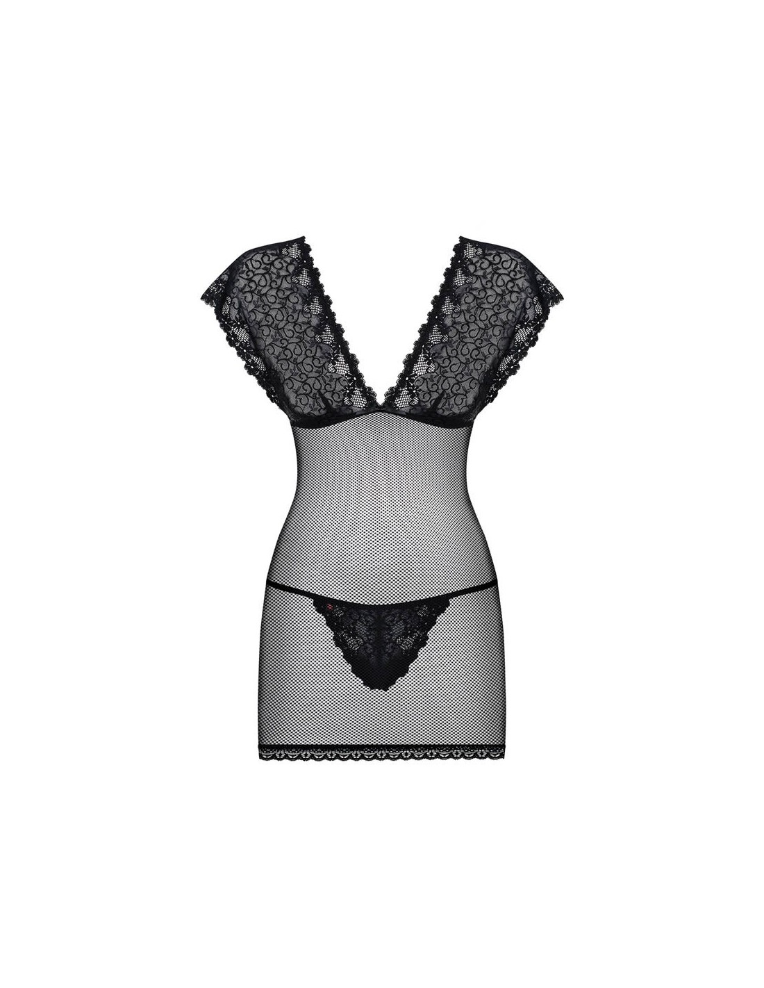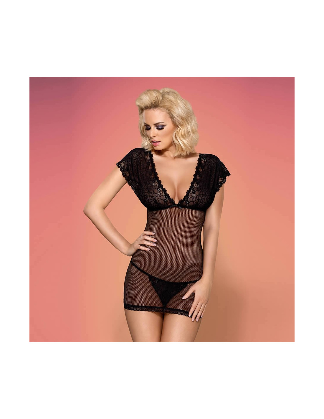 Soft fishnet and delicate lace are a fabulous pair. Why? They look amazing together and bring incredibly pleasant sensations! Wanna check it yourself? Put on this chemise, feel the nice thrill on your skin and… let your beloved join in! Look at the sexy details: - loose-fitting, lacy top and tight-fitting, knitted bottom – incredibly sensual combination! - row of tiny flowers on the deep neckline, sleeves and back - cute bow below the bust - edges finished with lace - the product includes chemise and adorable, lace thong - soft, elastic fabrics (90% polyamide, 10% elastane)