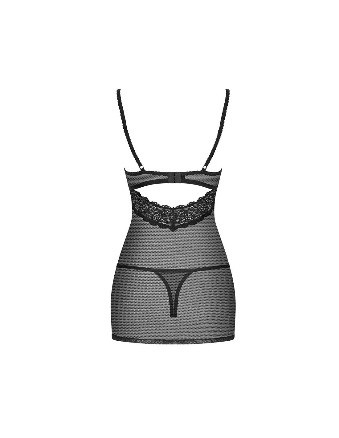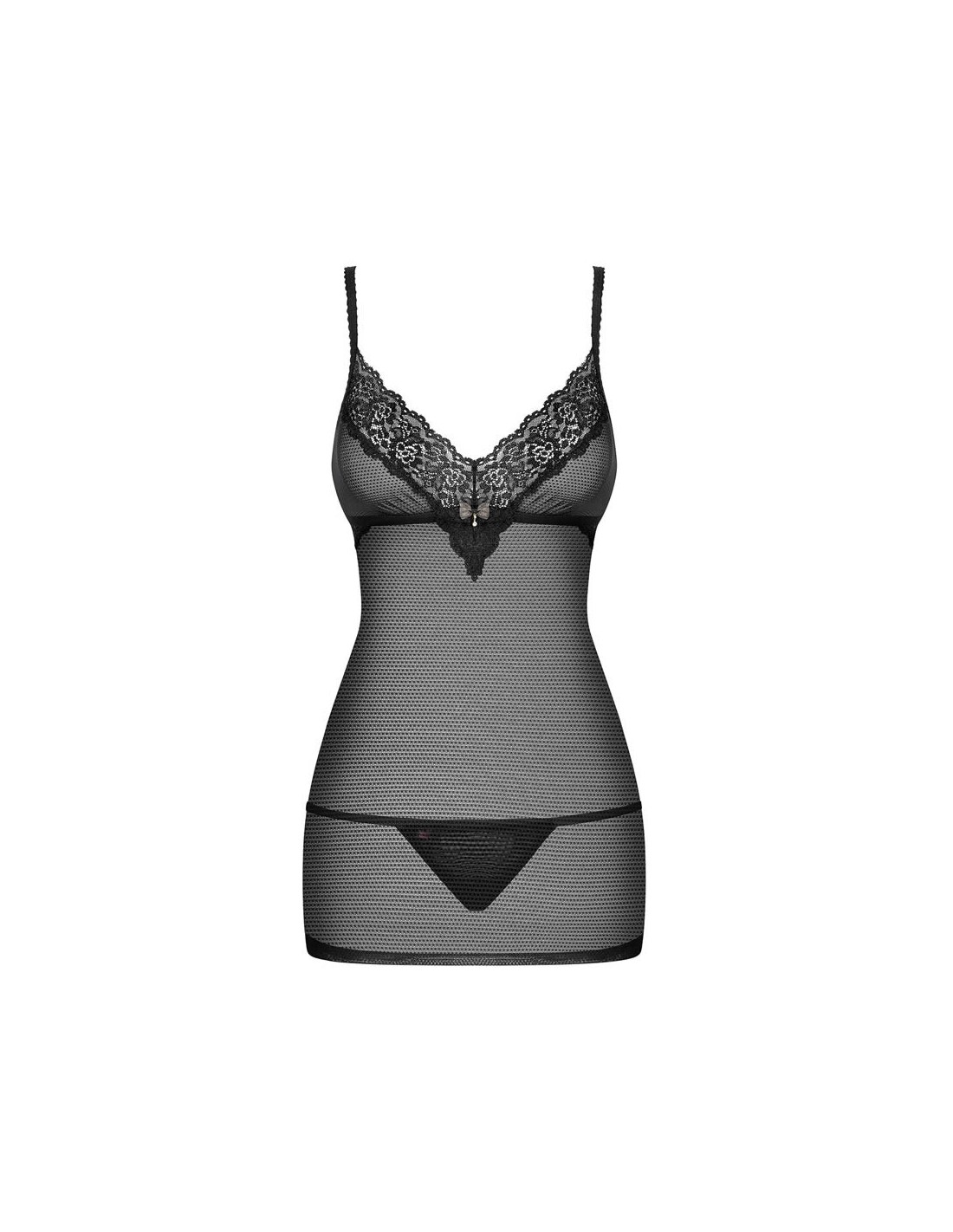 You’ve got to try this fabulous chemise – it’s been designed to give you a very sexy and charming look! Can’t wait to put it on for a hot night with your beloved man? Aww yes, get ready. You’ll feel fantastic! Check these tempting details: - elegant chemise which gives plenty of feminine charm and sex appeal! - see-through mesh with a tiny dot pattern - adjustable straps and multistage closure – perfect fitting guaranteed - beautiful, lacy neckline with floral motif – fantastically adorned breasts - elastic strap below the bust – accentuated breasts line - bow and shiny jewel on the lace below the bust – eye-catching details - triangular cut and lacy adornment on the back – incredibly sexy design! - product includes chemise and matching thong - nice to touch and perfectly elastic fabric (82% polyamide, 18% elastane)