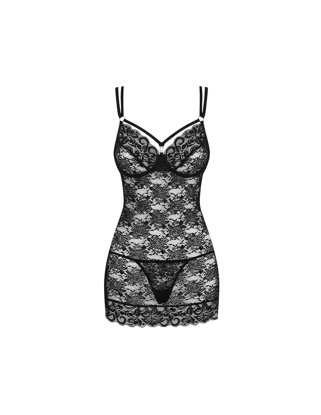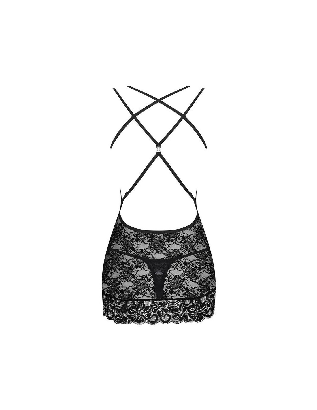 Your body covered with subtle flowers, your bust and back adorned with sexy straps and gorgeous jewels. What a stunning view! Who will be an incredibly charming woman tonight? You! Just get this fabulous chemise! We reveal all details for you: - tempting, black, lace chemise - beautiful rose pattern - four straps crossed on the exposed back – incredibly sexy look! - all straps are adjustable – Did2Fit – perfect fitting guaranteed - underwire cups – accentuated breasts - seductive straps on the bust - shiny jewels and decorative circles (NickelFree – no allergy symptoms) - product includes chemise and lace thong - delicate, elastic fabric (90% polyamide, 10% elastane)