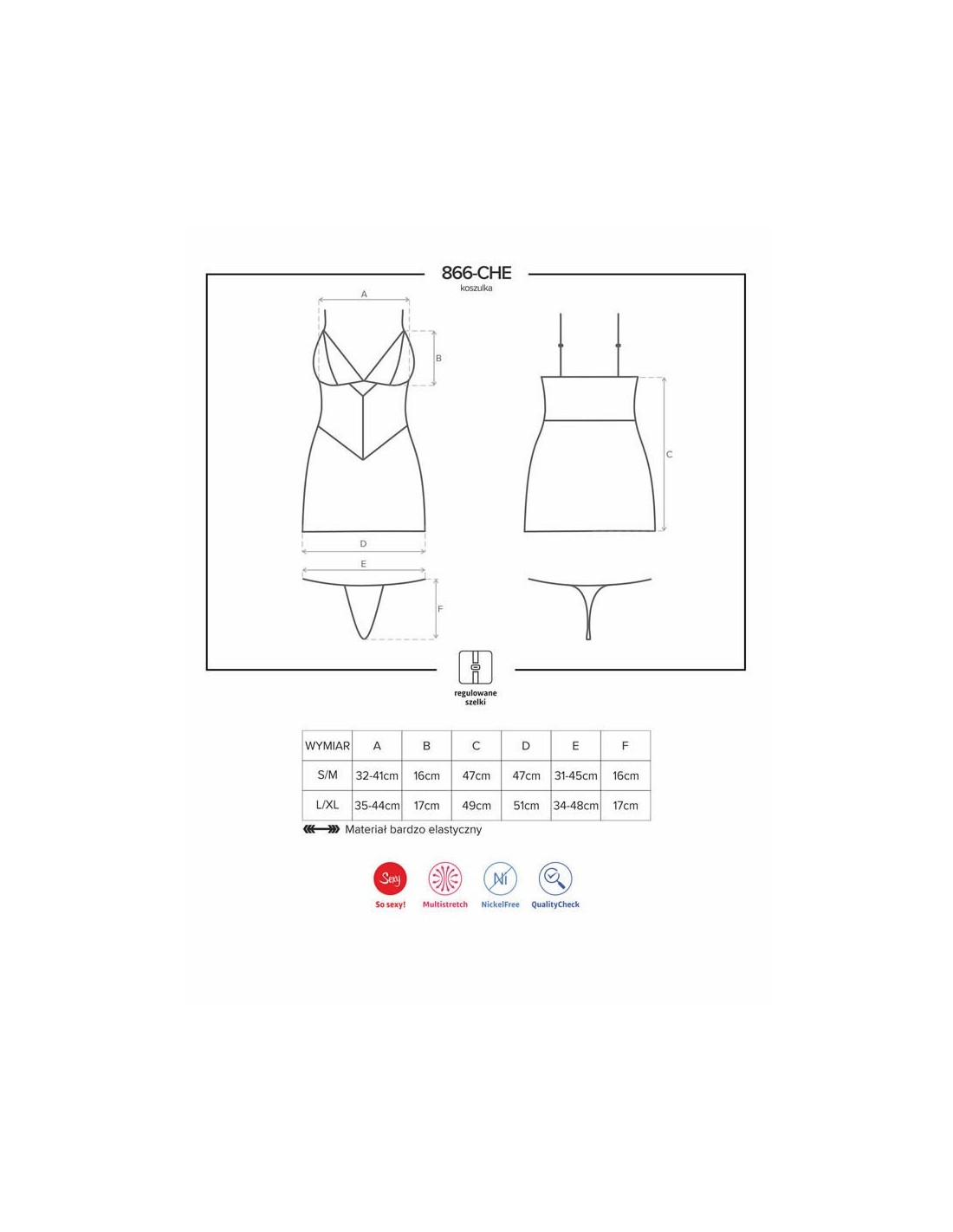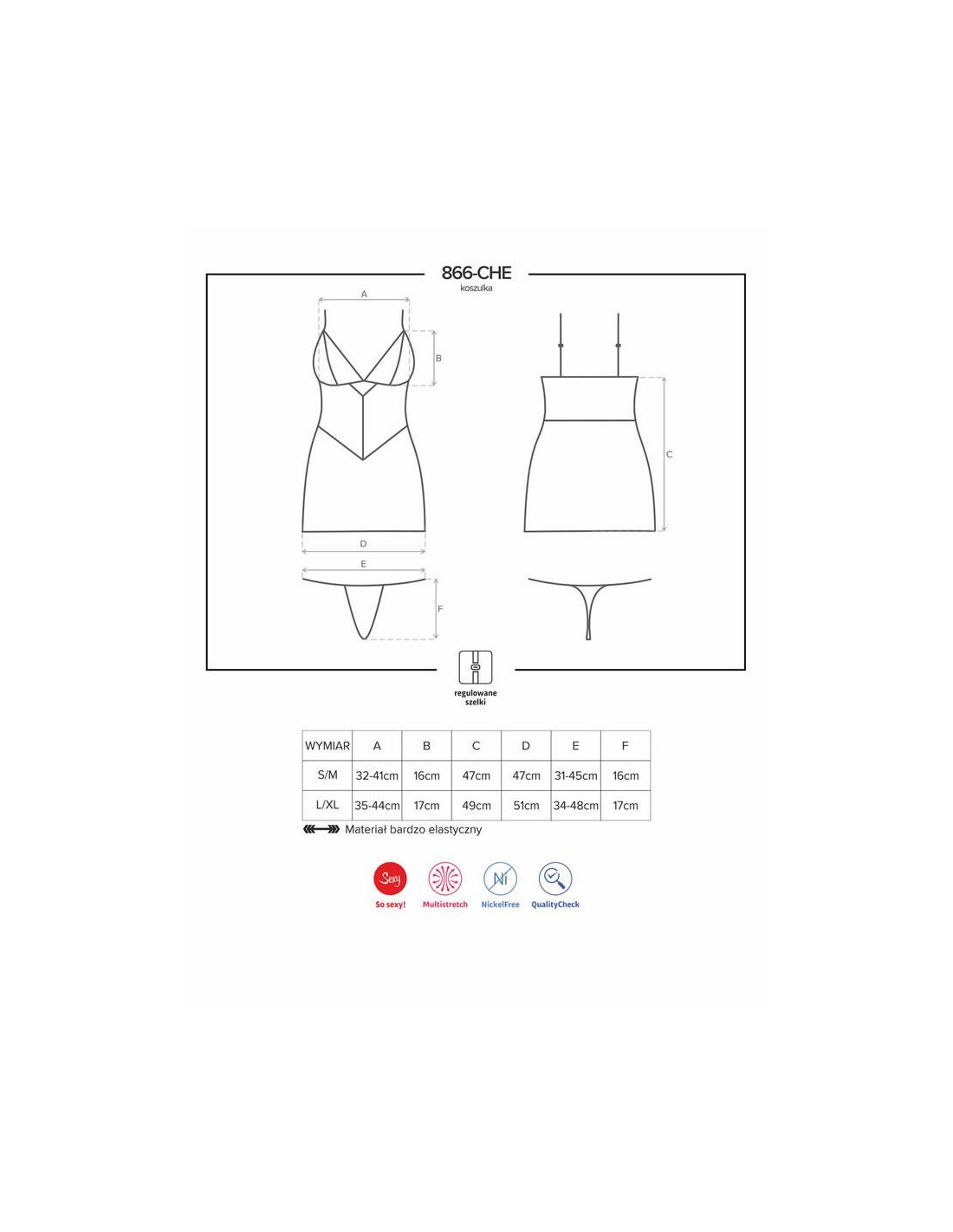 Questa chemise ha due colori eleganti e molti dettagli incredibilmente sexy. Vuoi scoprirli uno per uno insieme al tuo uomo? Vuoi rendere i tuoi momenti intimi più piccanti e divertirti? Tutto ciò di cui hai bisogno è proprio qui! Controlla tutti i dettagli favolosi: - sexy chemise in perfetto stile - forme perfettamente enfatizzate! - pizzo blu scuro con motivo floreale - ornamento fantastico - lacci regolabili - facili da regolare - rifinitura blu scuro su cinturini - cuciture verticali sul busto - seno accentuato - taglio allettante con un fiocco e un pendente lucido - dettagli assolutamente sorprendenti e accattivanti! - pizzo nero sulla scollatura e intorno alle cosce - look affascinante - Il prodotto include chemise e perizoma - tessuto piacevole e perfettamente elastico (94% poliammide, 6% elastan)
