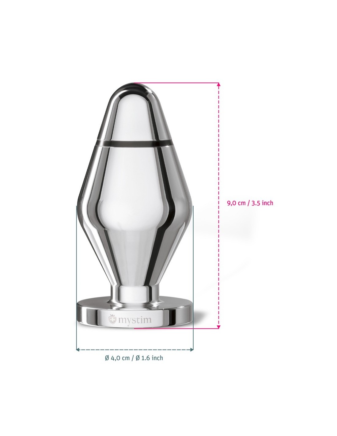 Il butt plug Little John di Mystim per gli amanti della tensione o il dispositivo di stimolazione Pure Vibes di Mystim. Con un diametro di 5 cm, il plug e-stim è un giocattolo anale ideale. Il metallo liscio si assottiglia per consentire un facile inserimento del butt plug. Dopo pochi centimetri, i due poli sono isolati e la stimolazione elettrica può essere avvertita molto presto. Potete godervi questo piacere formicolante e lussurioso per ore, oppure variare e intensificare la stimolazione in modo da raggiungere rapidamente un climax sensazionale. Il plug in metallo può essere riscaldato sul termosifone o raffreddato in frigorifero prima dell'uso.