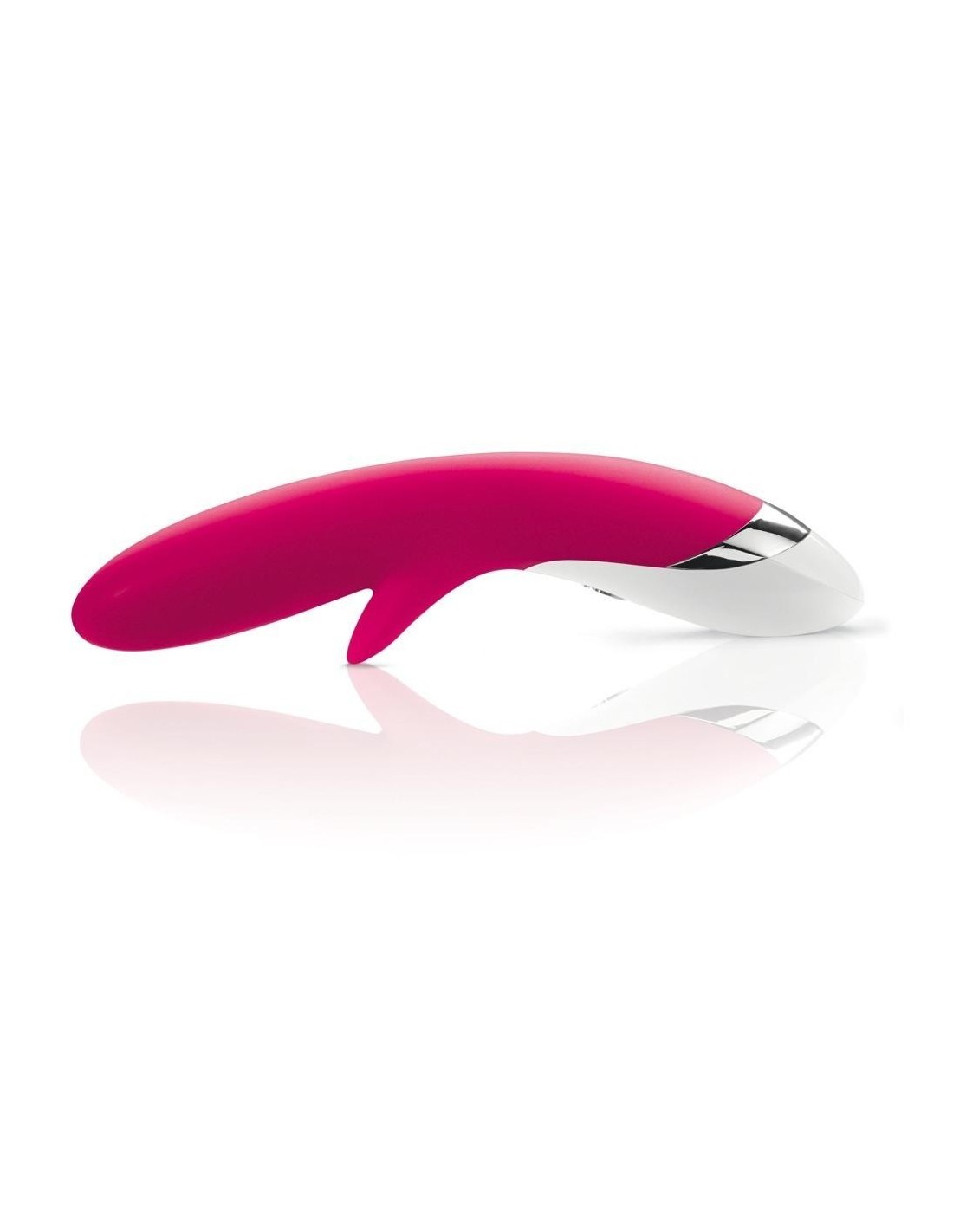 This beautifully shaped vibrator with a clitoris stimulator knows how to impress not only with its velvety soft surface but also with its 2 vibrating motors, 8 vibration programmes in 5 intensity levels. It is also extremely quiet! Complete 27 cm, O̸ 3.8 cm. Lithium-ion battery: 16 g. Material: platinum silicone, ABS. Includes a USB magnetic charger cable and a hard case.