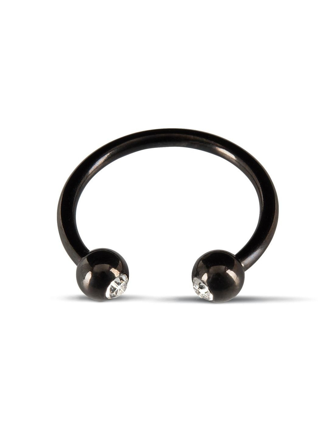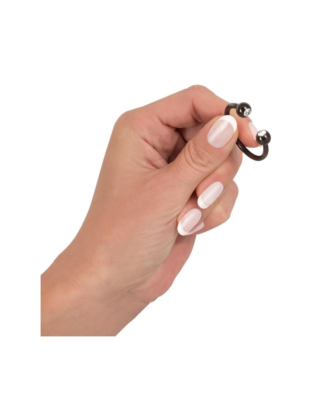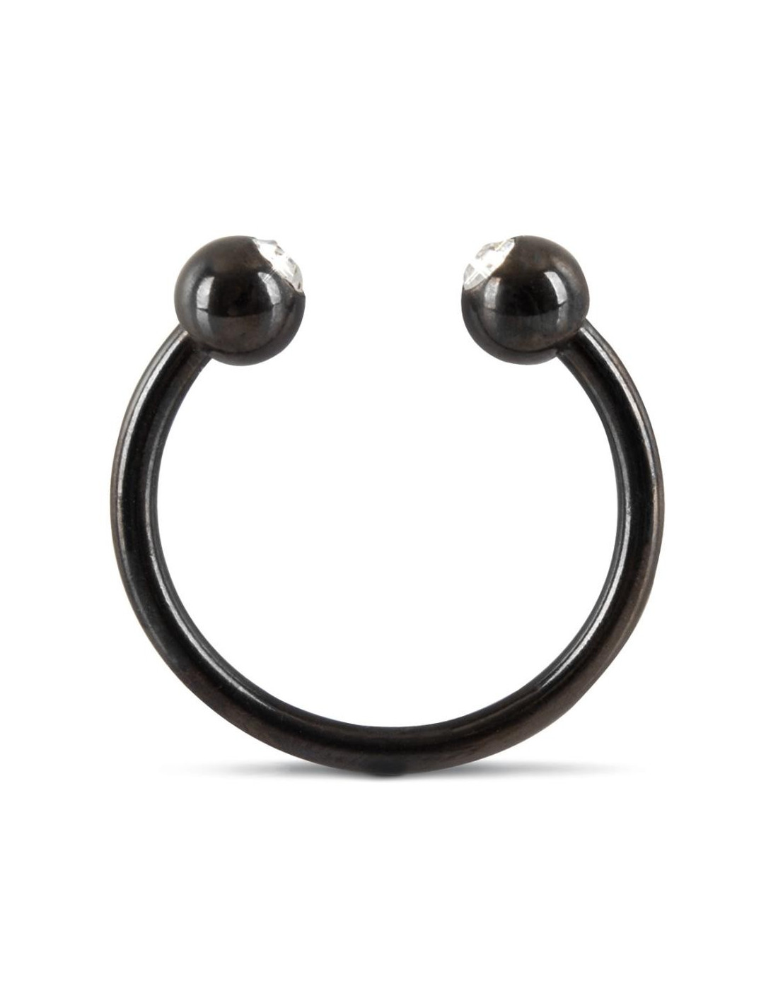 L'anello per il glande di Rebel è un anello aperto in acciaio inossidabile con 2 sfere gioiello, adatto al pene circonciso e non circonciso. L'anello stretto è indossato direttamente sulla corona. La sua aderenza provoca un leggero accumulo di sangue nella punta del pene, rendendolo particolarmente paffuto e sensibile al tocco. Questo può anche ritardare l'eiaculazione. Se si gira l'anello verso il basso, le palline dei gioielli stimolano ulteriormente il frenulo. Realizzato in metallo robusto per una lunga durata e perfetto per giochi a temperature diverse.