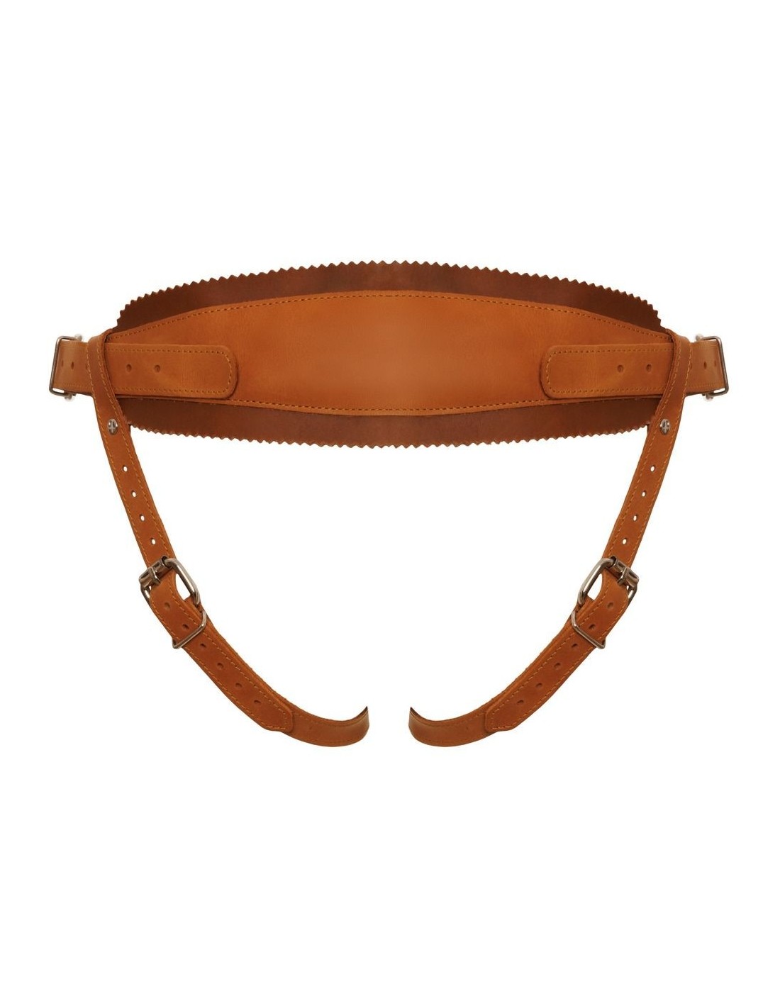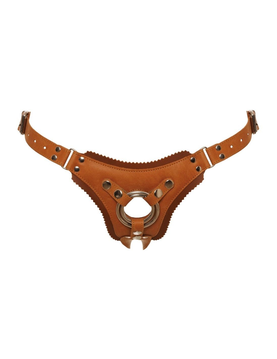 Perizoma strap-on di ZADO realizzato in pelle liscia dal tipico aspetto naturale con dettagli in metallo argentato. Doppio strato e schiena leggermente imbottita per un elevato comfort. Bordi accuratamente cuciti. La pelle naturale non è colorata/cerata e può sviluppare una bella patina nel tempo (aspetto usato).