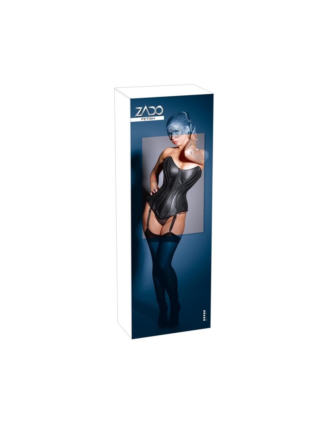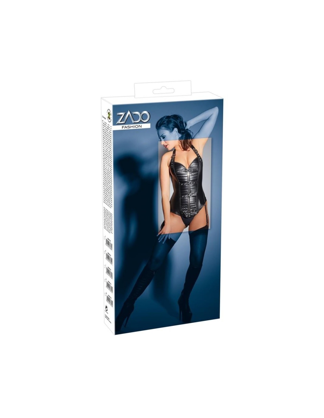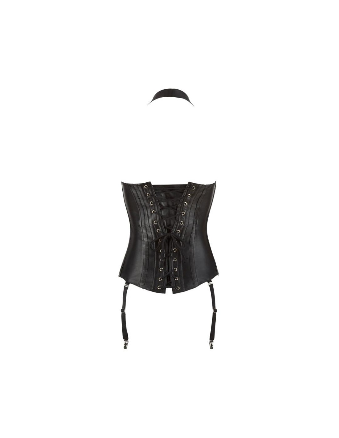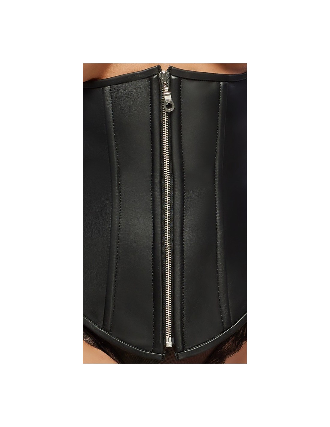 Corsage di ZADO in nappa di agnello con trapuntatura in stile biker e cintura in vita. Con cerniera a tutta lunghezza e fibbie sul davanti e allacciatura sul retro - con fodera opaca o "open back". Spalline regolabili, bretelle regolabili e rimovibili. Nero. Senza perizoma e calze.
