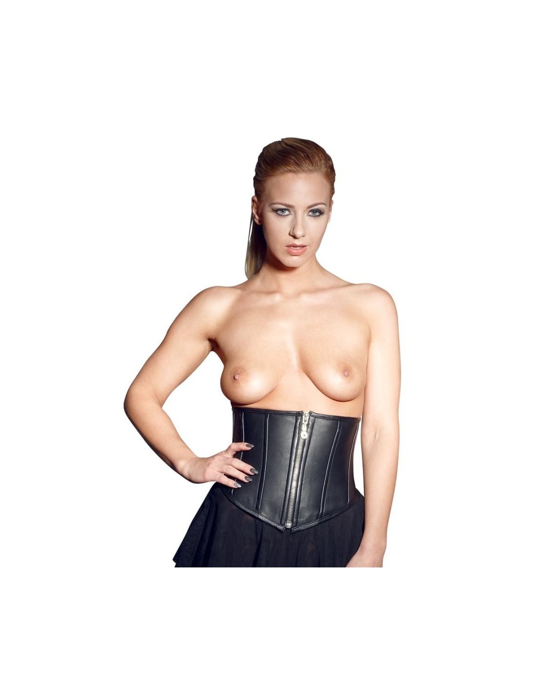 Corsetto nero in vita in nappa di agnello con cerniera davanti e allacciatura dietro. Piacevole modellamento della vita con le bacchette. Adatto per incontri privati ma anche per una visita al club notturno o per scambisti.