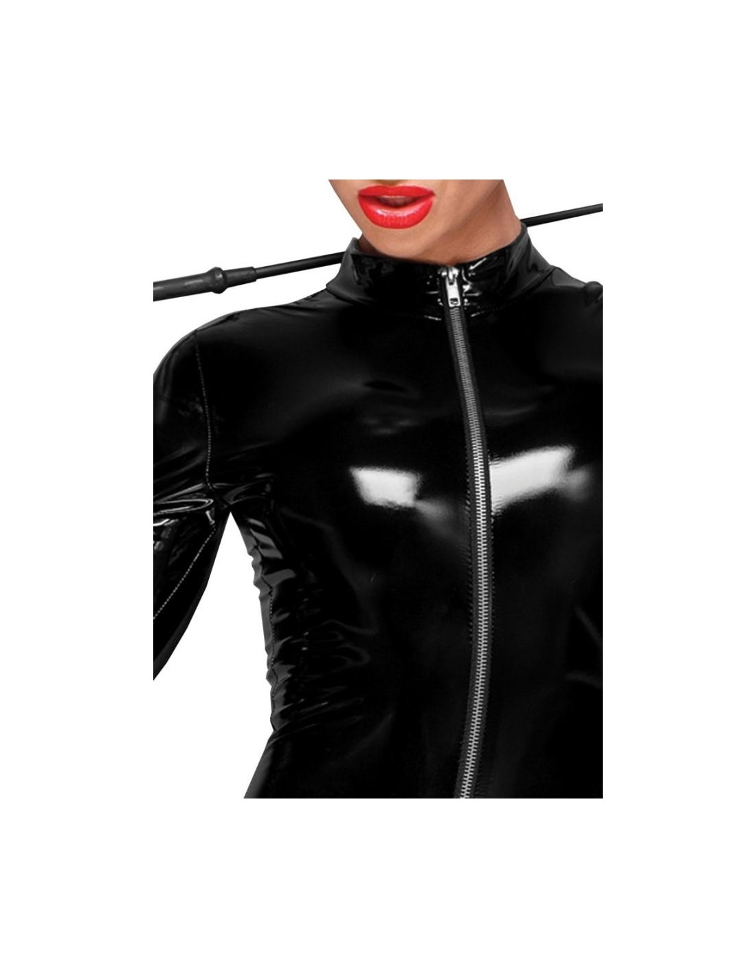 Sensuale e lucida tuta Decadence di Noir per un look audace. Una cerniera decorativa in metallo a 3 vie corre lungo il davanti dal colletto al cavallo. Le maniche lunghe e le gambe sono dotate di ulteriori cerniere metalliche per facilitare la vestizione e la rimozione.