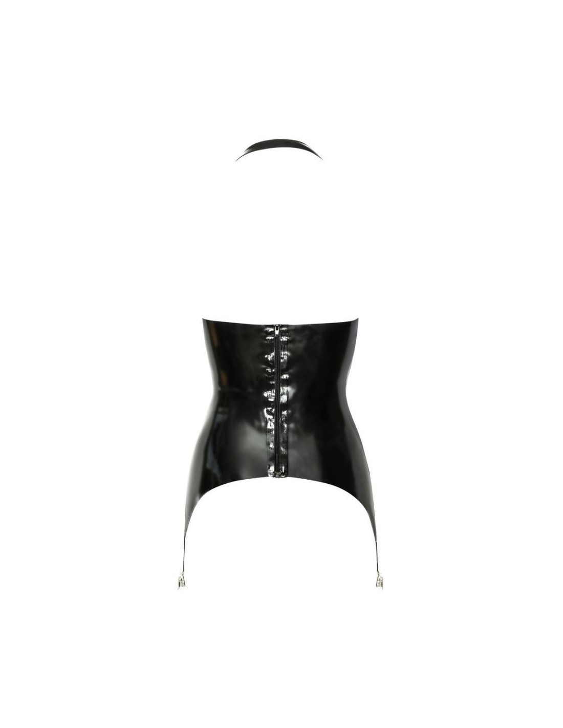 Semplice e bellissimo reggicalze senza busto di LateX in lattice naturale nero (spessore 0,4 mm). Con ferretti integrati nelle coppe per una perfetta vestibilità senza seno e collo halter regolabile. Zip sul retro per facilitare la vestizione e la svestizione. 2 clip metalliche sulla parte anteriore e laterale delle bretelle larghe.