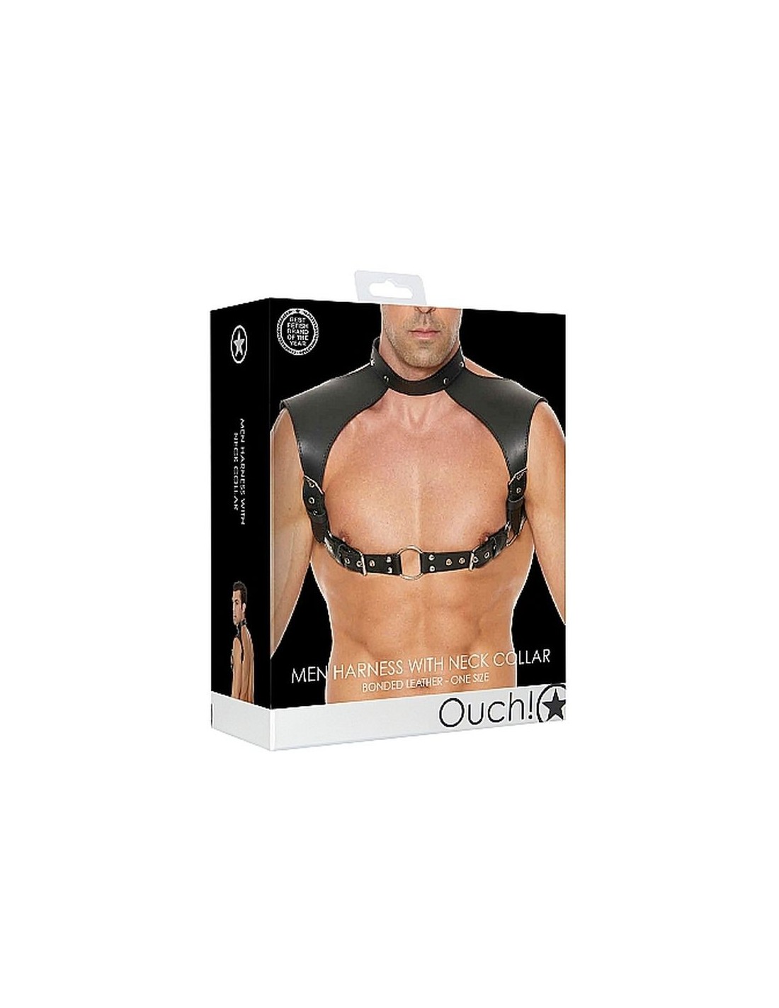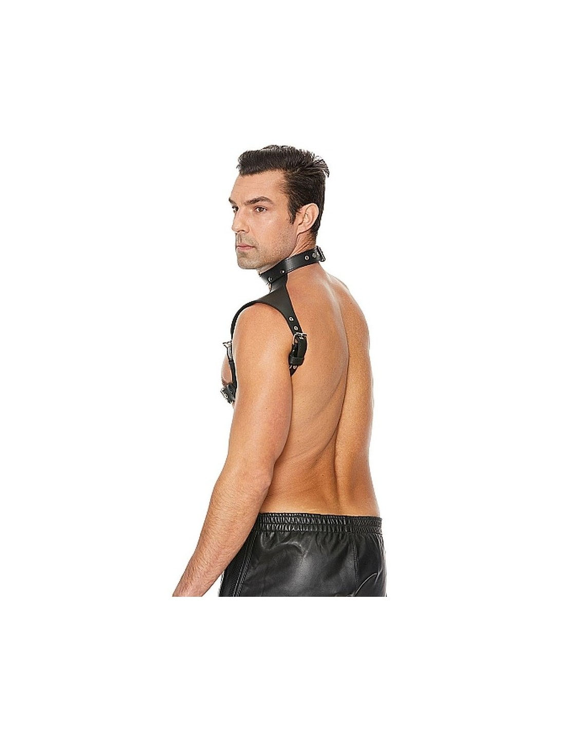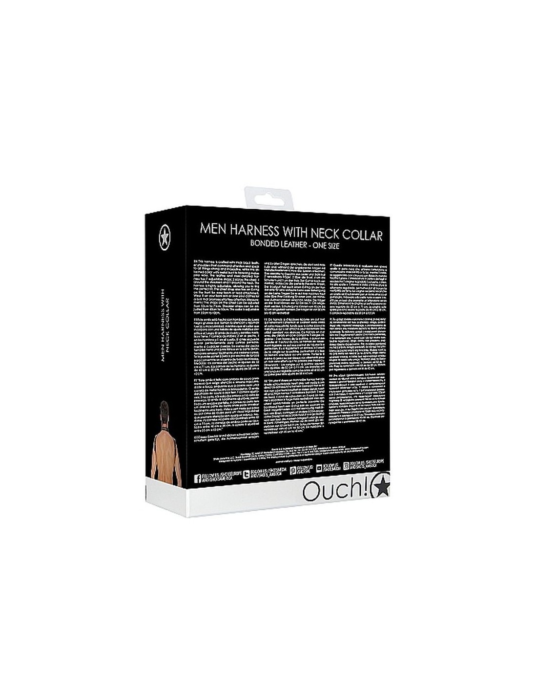 Men Harness with Neck Collar - One Size - Black Questa imbracatura è realizzata con spesse spalle in pelle nera che attirano l'attenzione e comunicano mascolinità e forza, mentre il collare agganciato con chiusura con fibbia in metallo facilita il gioco. L'imbracatura in pelle e dettagli in acciaio ha 7 cinghie regolabili; 2 sul petto, 4 intorno alle spalle e 1 intorno al collo. L'imbracatura è altamente regolabile, permettendoti di trovare la vestibilità perfetta. La cinghia sul petto ha anche un anello ad O sul davanti per un facile attacco al guinzaglio. Indossala sulla pelle nuda o sopra i vestiti per un look che promette un'attenzione senza sforzo. Dimensioni: le cinghie sul petto possono essere regolate da 52 cm a 71 cm. Le cinghie sulle spalle possono essere regolate da 40 cm a 50 cm. Il collare è regolabile da 35 cm a 42 cm Dimensioni imballaggio: 20 x 80 x 24,50 cm Peso imballaggio: 451 gram Misure Prodotto: 65 x 1 x 28,5 cm Peso Prodotto: 378 gram Privo di Ftalati: Sì Materiale: Metal, PU Leather