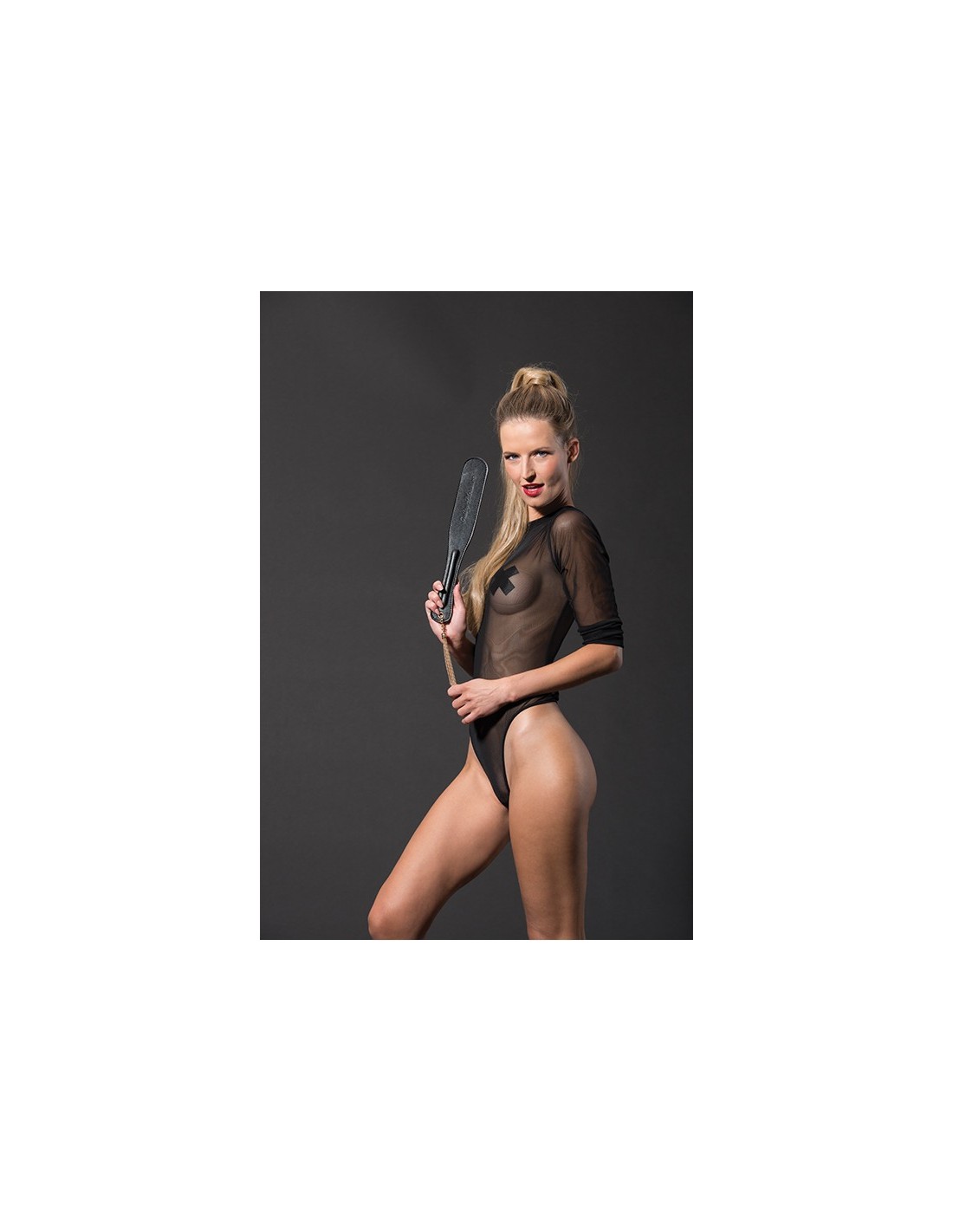 This paddle from the Guilty Pleasure BDSM collection is made of vegan leather. It has an elegant gold coloured tassel. The paddle is slightly flexible for soft or firm spanking. Suitable for BDSM-beginners as well as for the more experienced spanking enthusiasts but always use with care.