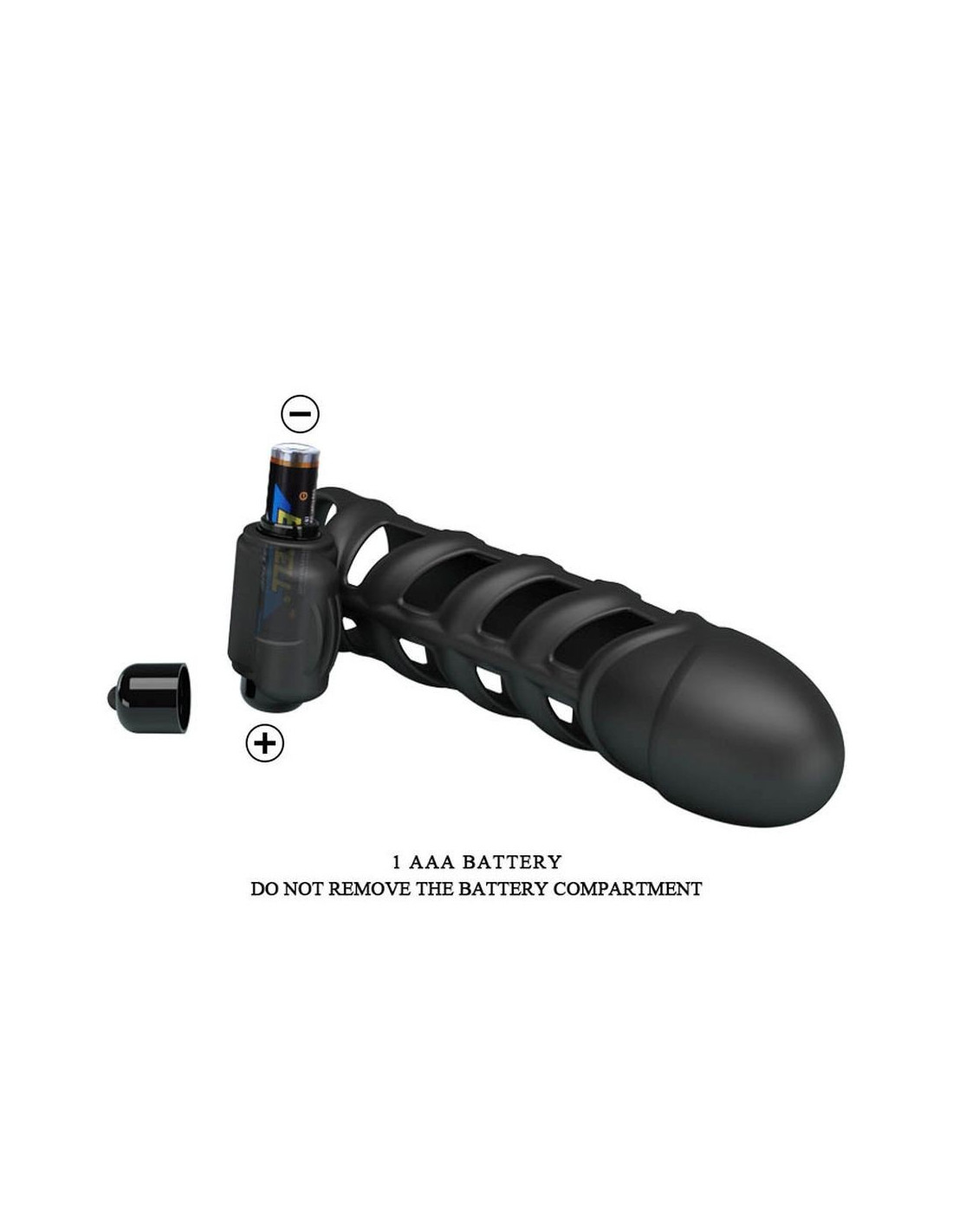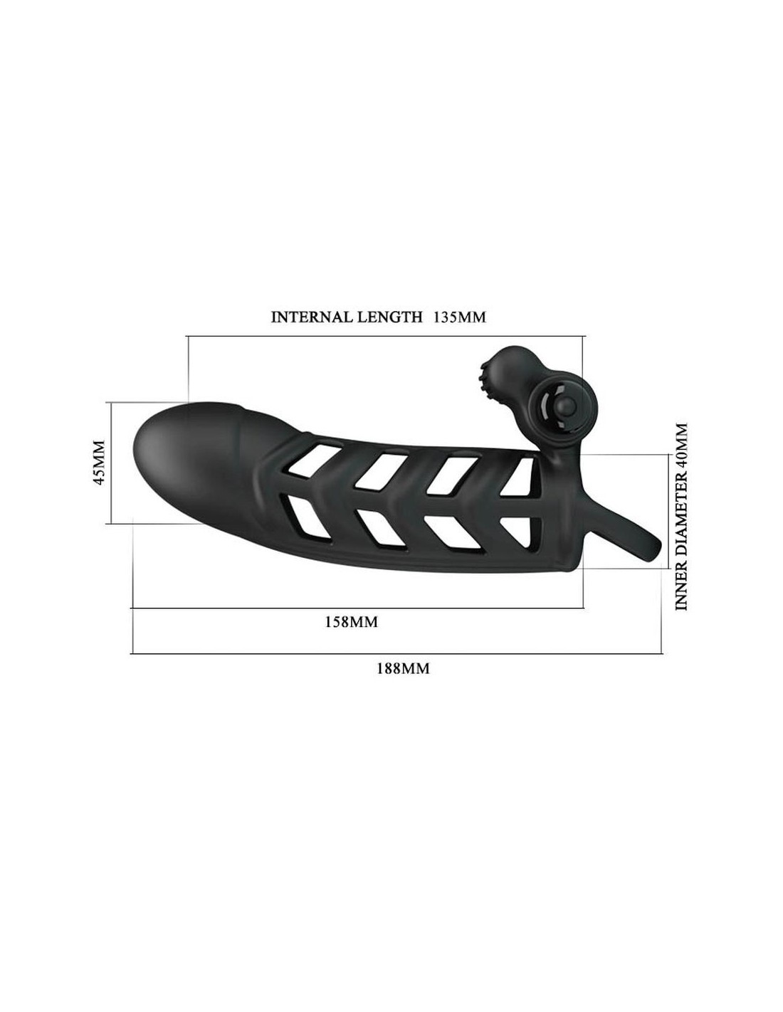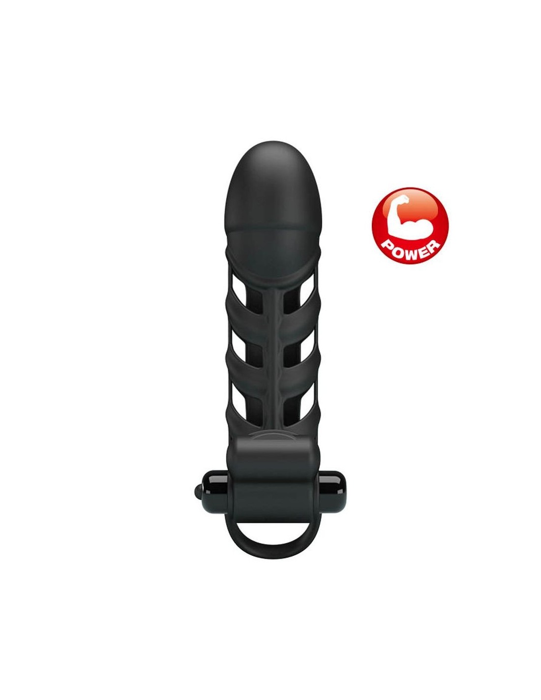 Migliora le prestazioni con questo manicotto vibrante in silicone. Questa guaina migliora l'erezione e promette il piacere. E realizzata in silicone liscio ed è fissata in posizione da un anello a sfera. Per una sensazione aggiuntiva accendi la parte di vibrazione per fornire stimoli direttamente al clitoride. La guaina elastica abbraccia il tuo pene per un'erezione più forte e duratura!