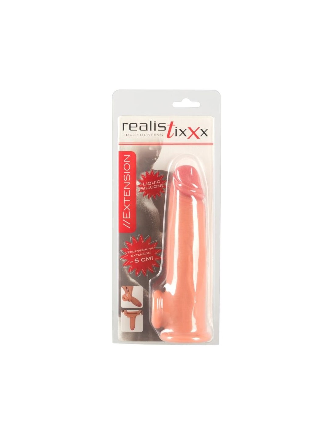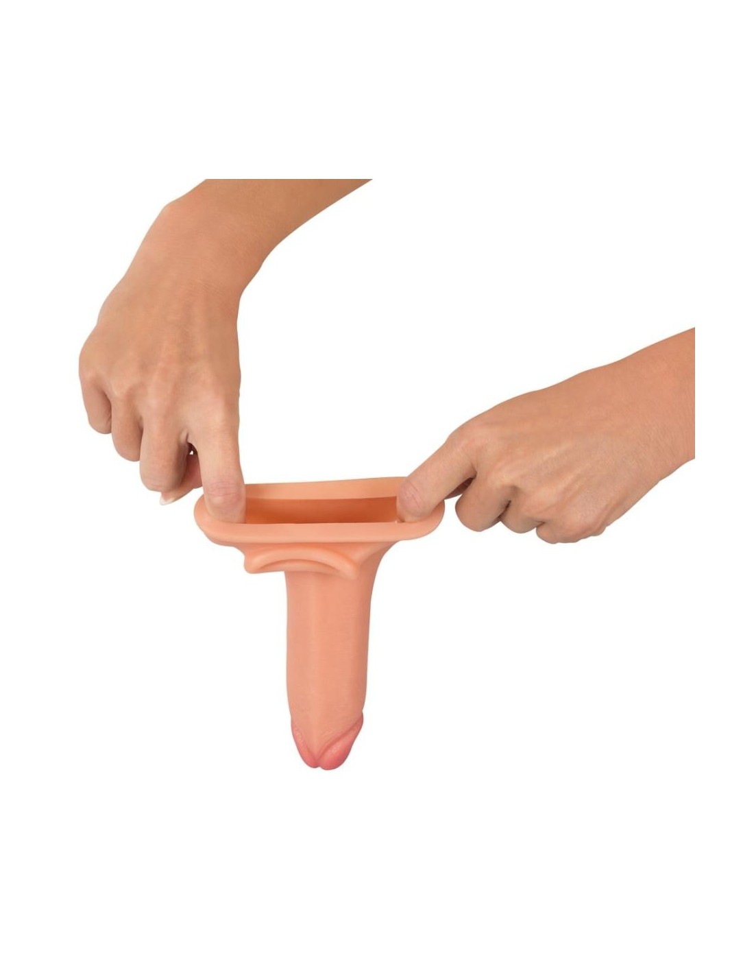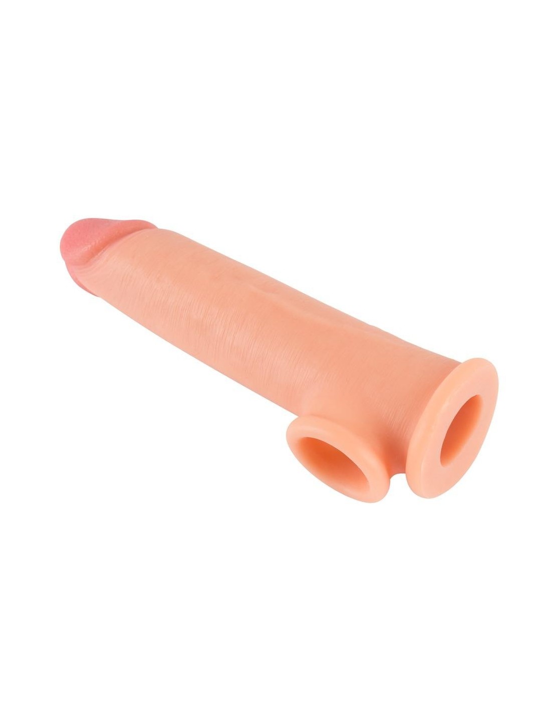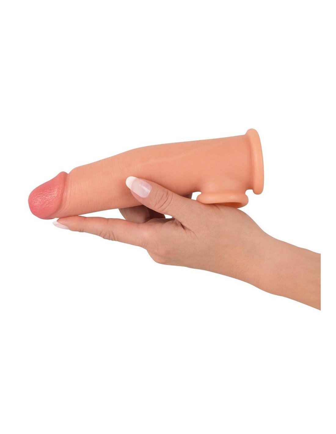 Guaina per il pene dal design naturale per ingrandire ed estendere il pene di 5 cm. La guaina realistica impressiona con il suo materiale particolarmente morbido e il glande pronunciato e le leggere venature sull'asta. Un'apertura per i testicoli fornisce una presa particolarmente sicura.