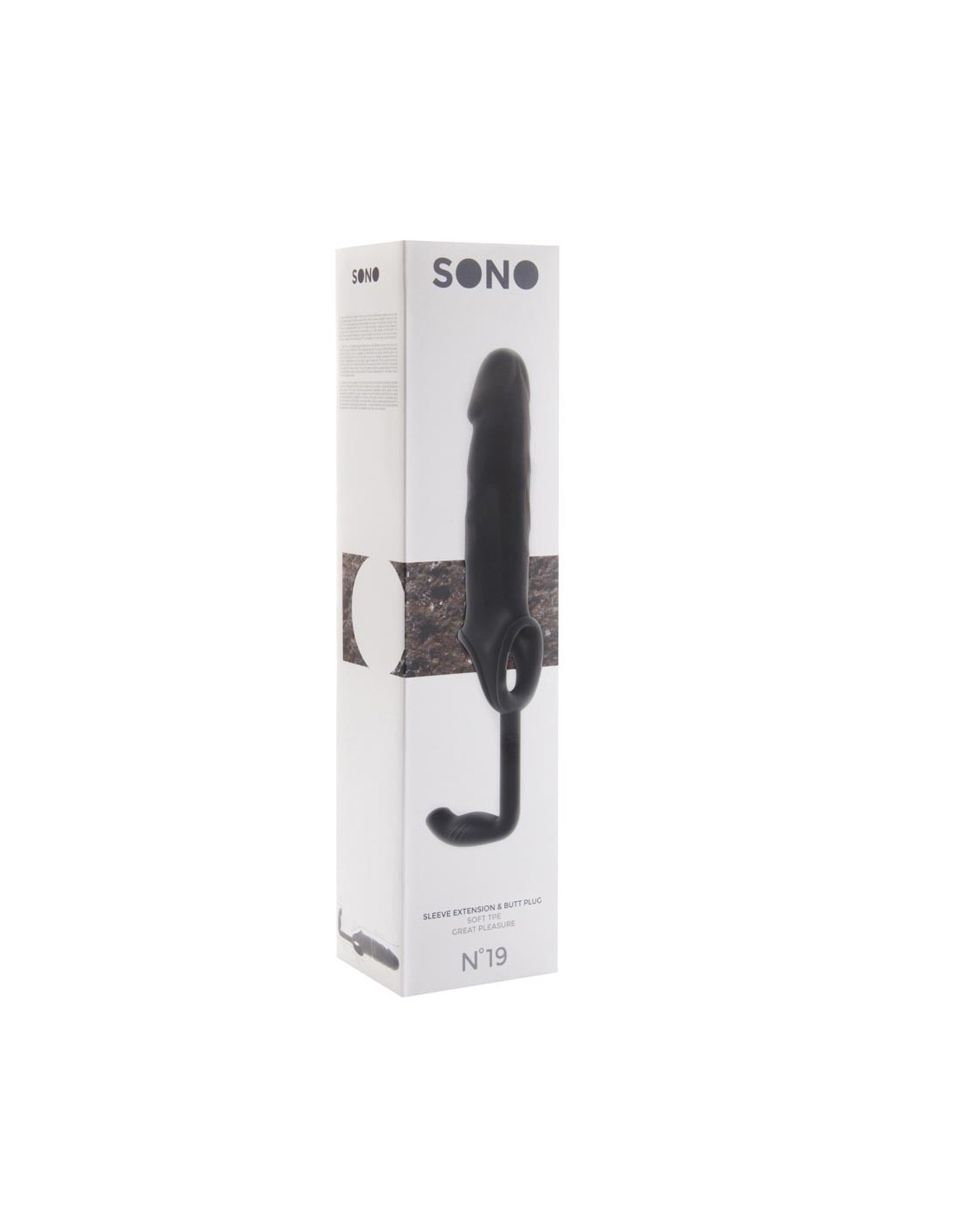 Stai cercando di guadagnare giusto qualche mm in piú nella maniera piú comoda possibile ma sei anche un fan del piacere anale? Bene, questo é esattamente quello che ti serve! La guaina é disegnata per estendere il vostro pene di 35 mm. La forma della guaina é ideale per una stimolazione ottimale e grazie allo strap per i testicoli, rimarrá saldamente al suo posto. Neanche le vostre mosse piú selvaggie la faranno vacillare! La guaina include inoltre un butt plug. Grazie alla sua forma e alla sua struttura é facile da inserire. É raccomandato l'utilizzo di un buon lubrificante ( by Pharmquests). La testina leggermente ricurva massaggerá gentilmente il vostro punto P e la sua minuta base vi regalerá delle enormi stimolazioni. É realizzata con il TPE di migliore qualitá e disponibile nelle colorazioni nero, grigio e trasparente.