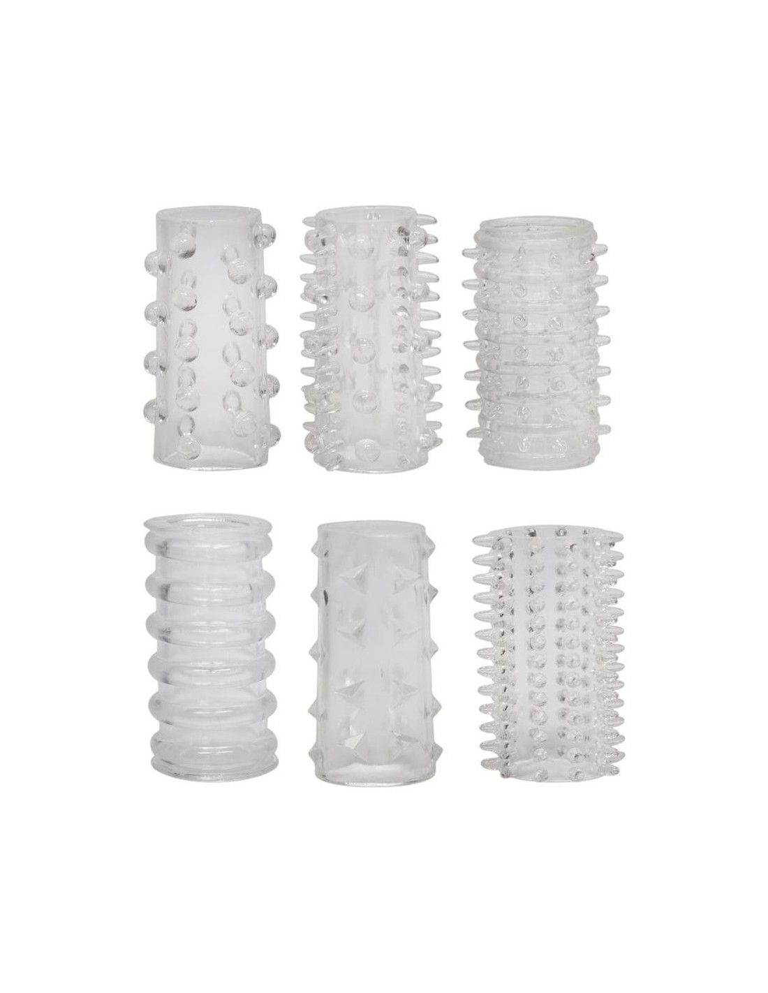 Inoltre, grazie alla super-aderenza viene supportata la vostra erezione. Consiglio speciale: un arricchimento anche se infilato sul dito o sul vibratore! Sei manicotti diversi. 4,5 cm di lunghezza, O̸ espandibile. Transparent. Materiale: TPE.