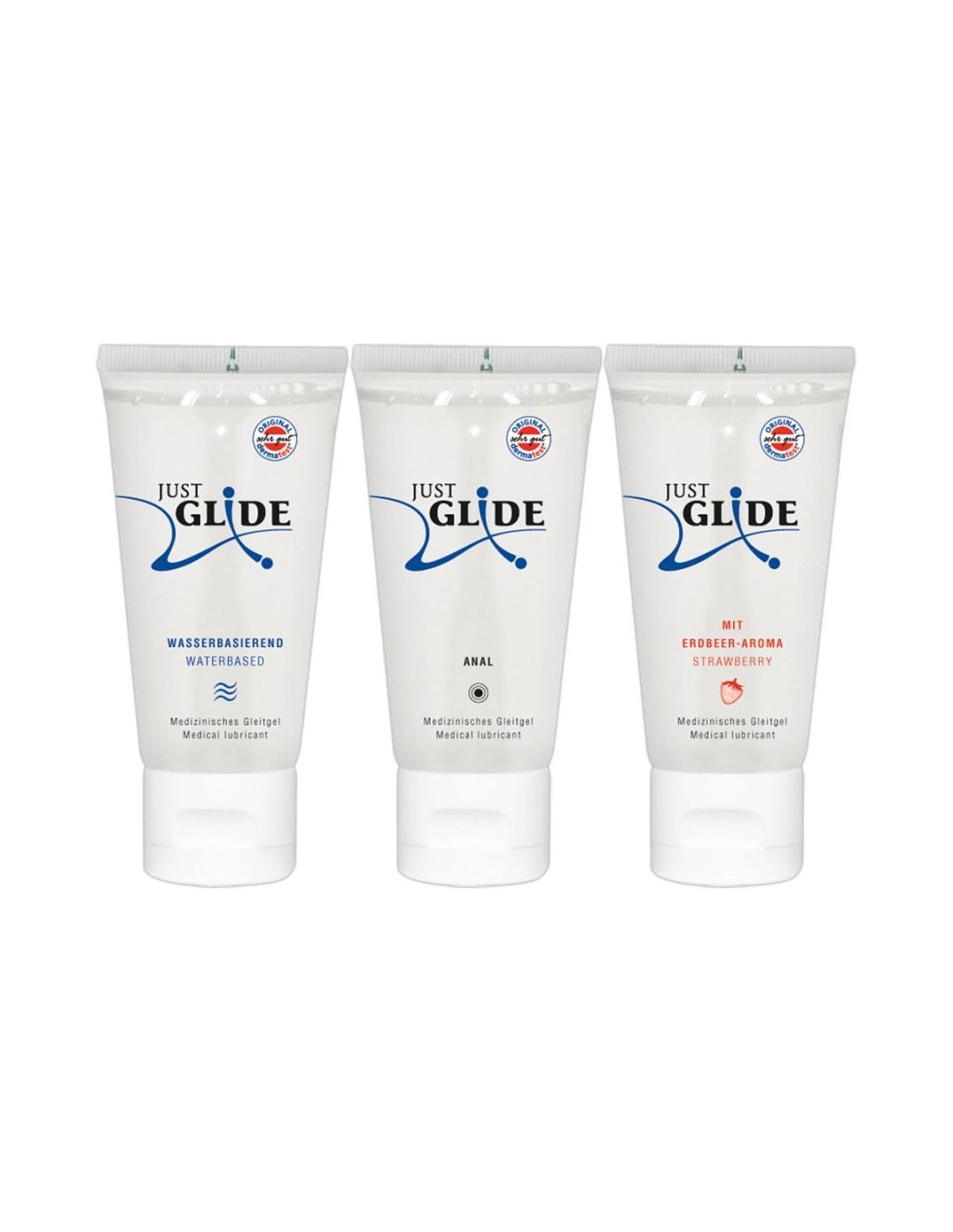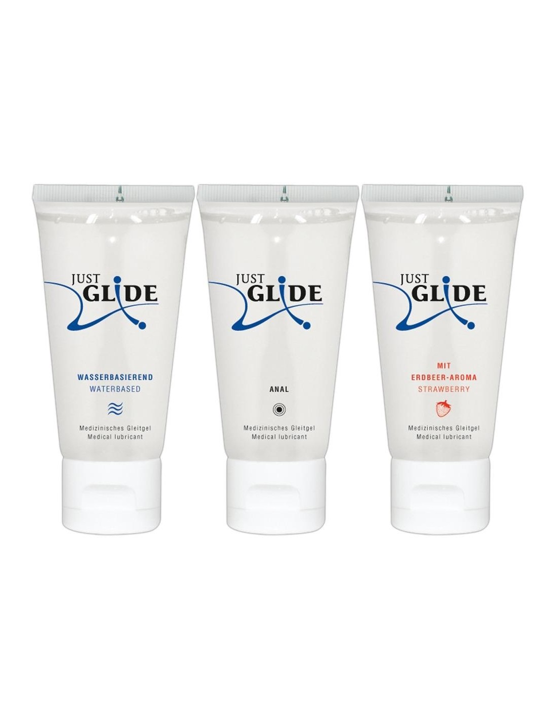 3 lubrificanti Just Glide in una volta sola in una confezione di valore. Just Glide a base d'acqua è 100% vegano ed è adatto anche per l'uso sulla pelle sensibile. Senza olio e grasso. Lavabile. Preservativo in lattice sicuro.