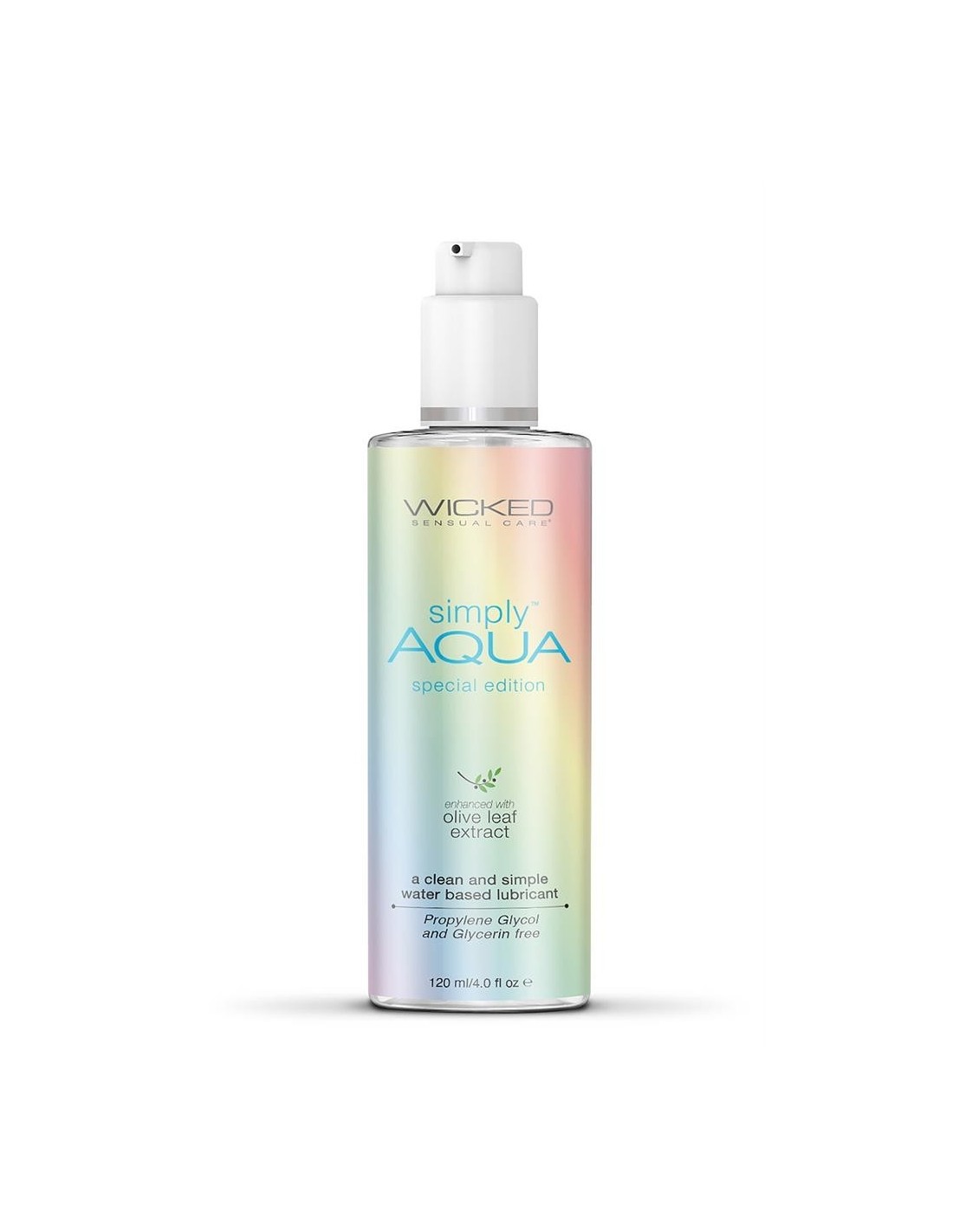 Add Simply Aqua Special Edition to your shelves and show your Pride year round. A portion of proceeds helps support LGBTQ+ communities throughout the year!Wicked Sensual Care’s line of Simply products is formulated without propylene glycol or glycerin. All Simply products are 100% vegan, cruelty-free and paraben-free. Like all Wicked Sensual Care formulas, they’re enhanced with Wickeds signature Olive Leaf Extract that inhibits the spread of harmful bacteria and microorganisms. When you’re ready for a clean lube, do it Simply.