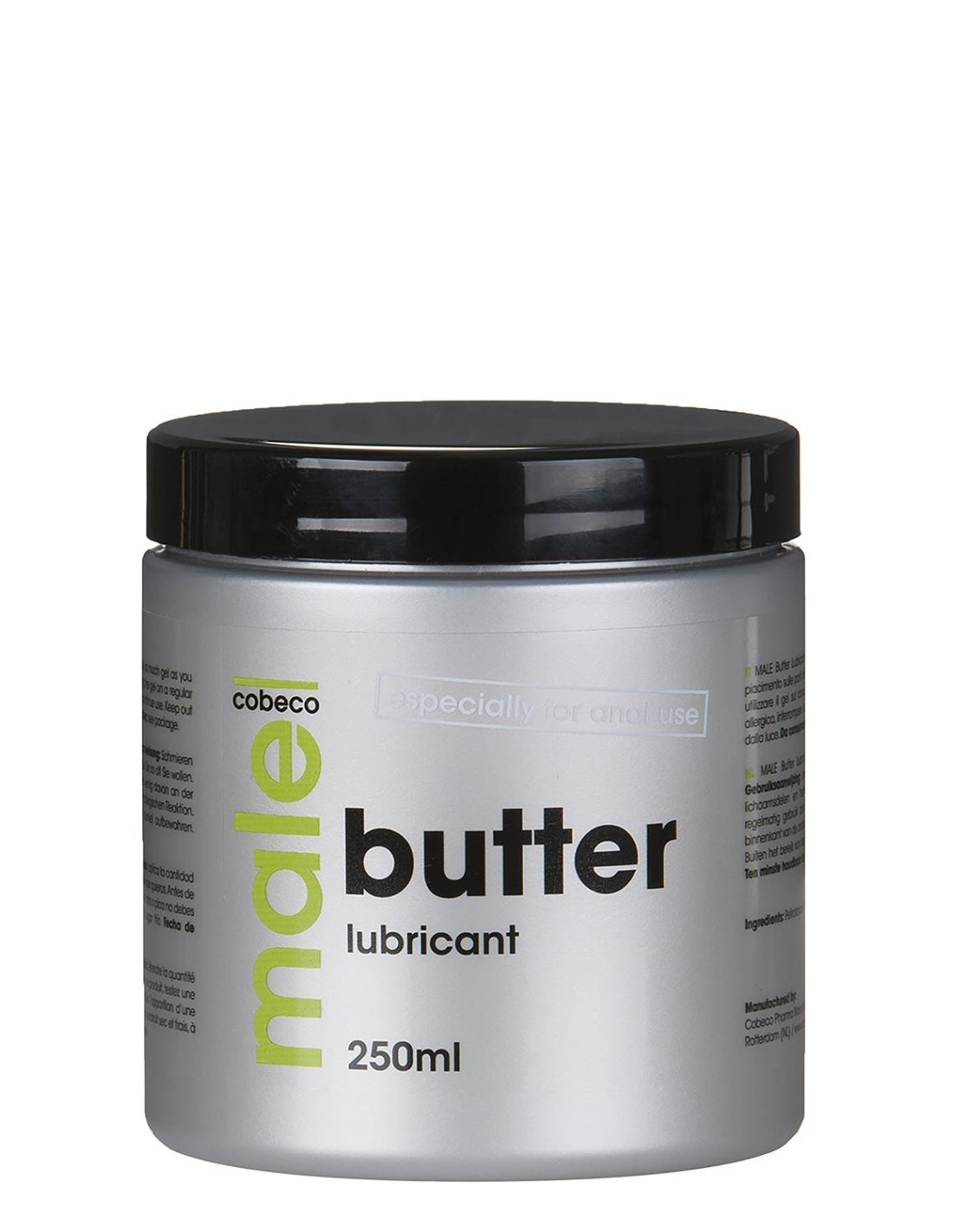 MALE Cobeco Butter Lubricant is a thick oil-based butter specially designed to increase the erotic experience. The unique buttery and thick texture stays longer on the skin and therefore gives a long-lasting gliding feeling. The butter has a moisturizing effect and smooths the skin. Thanks to MALE Cobeco Butter Lubricant you will experience more and longer comfort during intense sexual activities, for endless erotic pleasure.