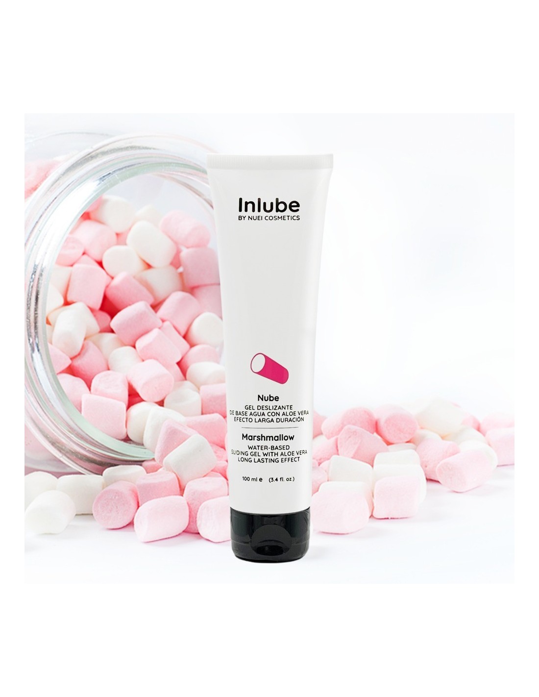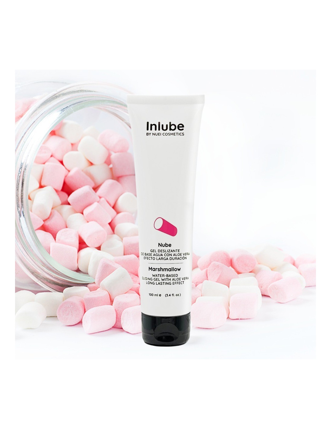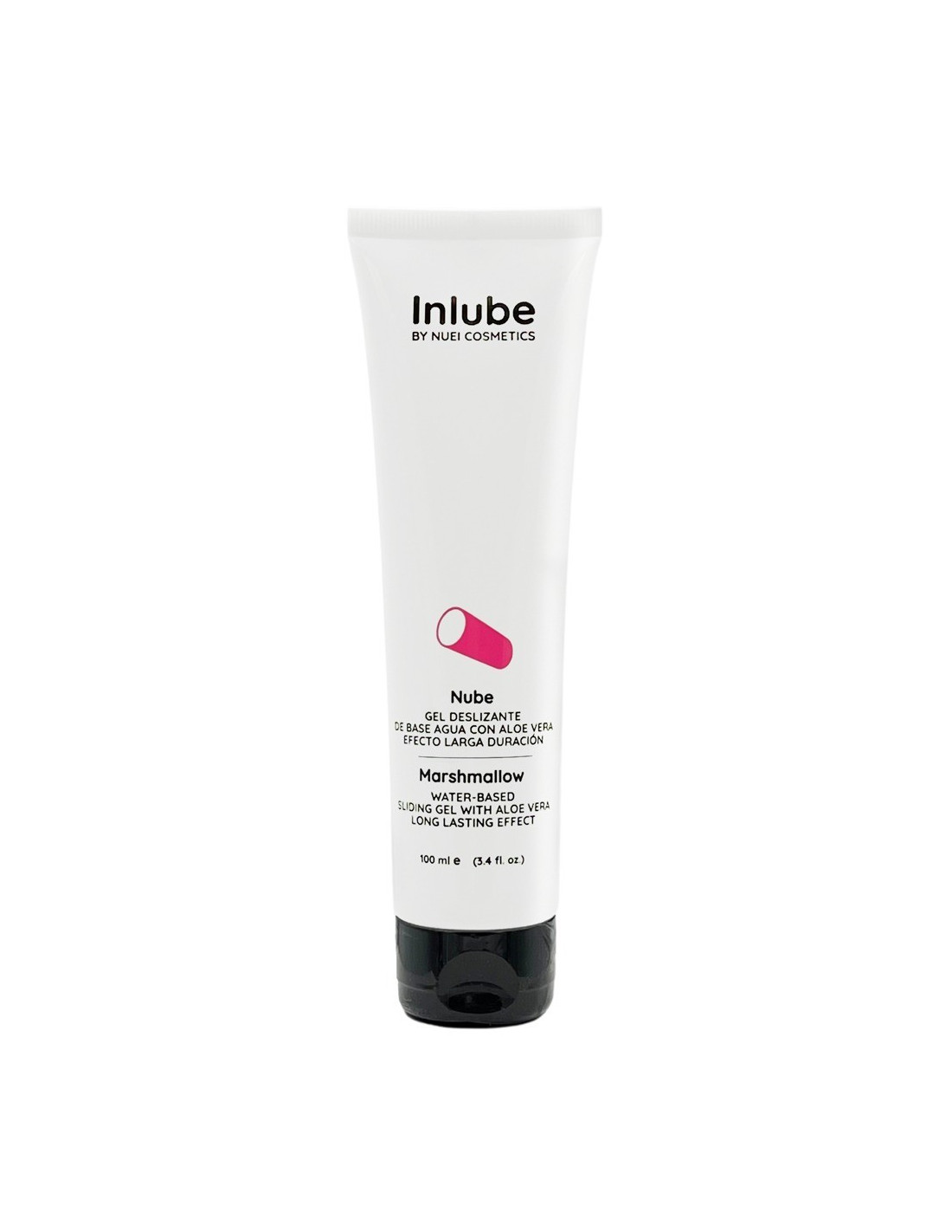 Lubrificante Inlube a base d'acqua per scivolare Marshmellow di NUEI con aloe vera e aroma dolce e intenso. Texture setosa con esclusivo effetto a lungo termine. La formula vegana è a base d'acqua e priva di parabeni, zucchero e glutine. Compatibile con lattice, preservativi e giocattoli di ogni tipo.