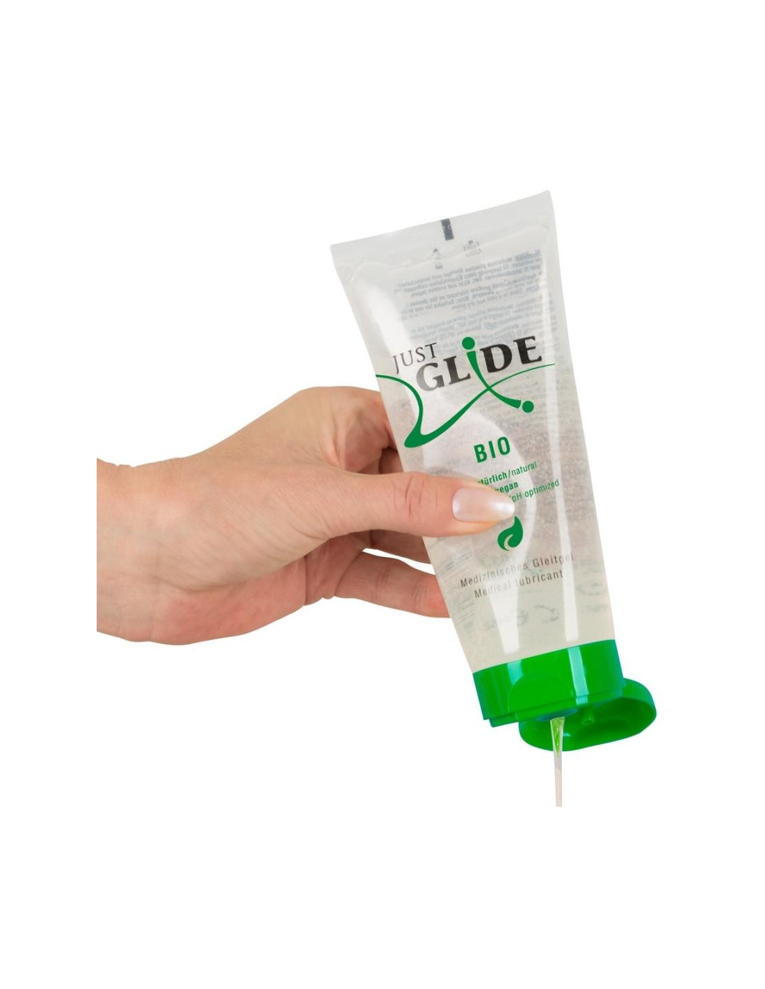Applicate il lubrificante organico Just Glide sulle zone del corpo desiderate per un maggiore divertimento durante il sesso. Adatto all'uso con preservativi in lattice e sex toys. Vegano, privo di oli e grassi. Proveniente principalmente da coltivazioni biologiche controllate e privo di conservanti e profumi sintetici.