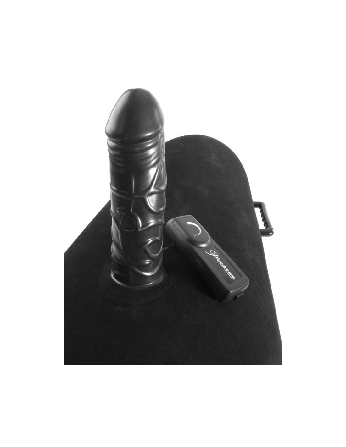 Gonfiabile, lungo cuscino da seduta con vibratore integrato in look pene distintamente venato. 3 maniglie robuste forniscono una presa sicura durante i vari piaceri dell'equitazione. La vibrazione a più velocità è infinitamente variabile da dolce a violenta con il controllo cablato. Il cuscino del sedile ha un rivestimento in velluto che si pulisce e non irrita la pelle. (Si prega di ordinare le batterie separatamente: 2 x AA)