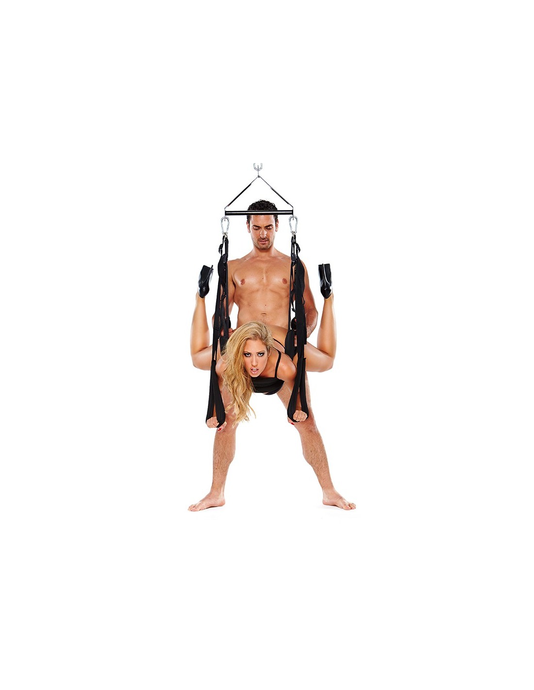 The Pleasure Swing holds up to 200 pounds with the spring, or 400 without, which means both of you can easily swing together. The strong nylon straps are adjustable and extra wide for maximum strength and flexibility, and the heavy duty spring makes sex extra bouncy fun!