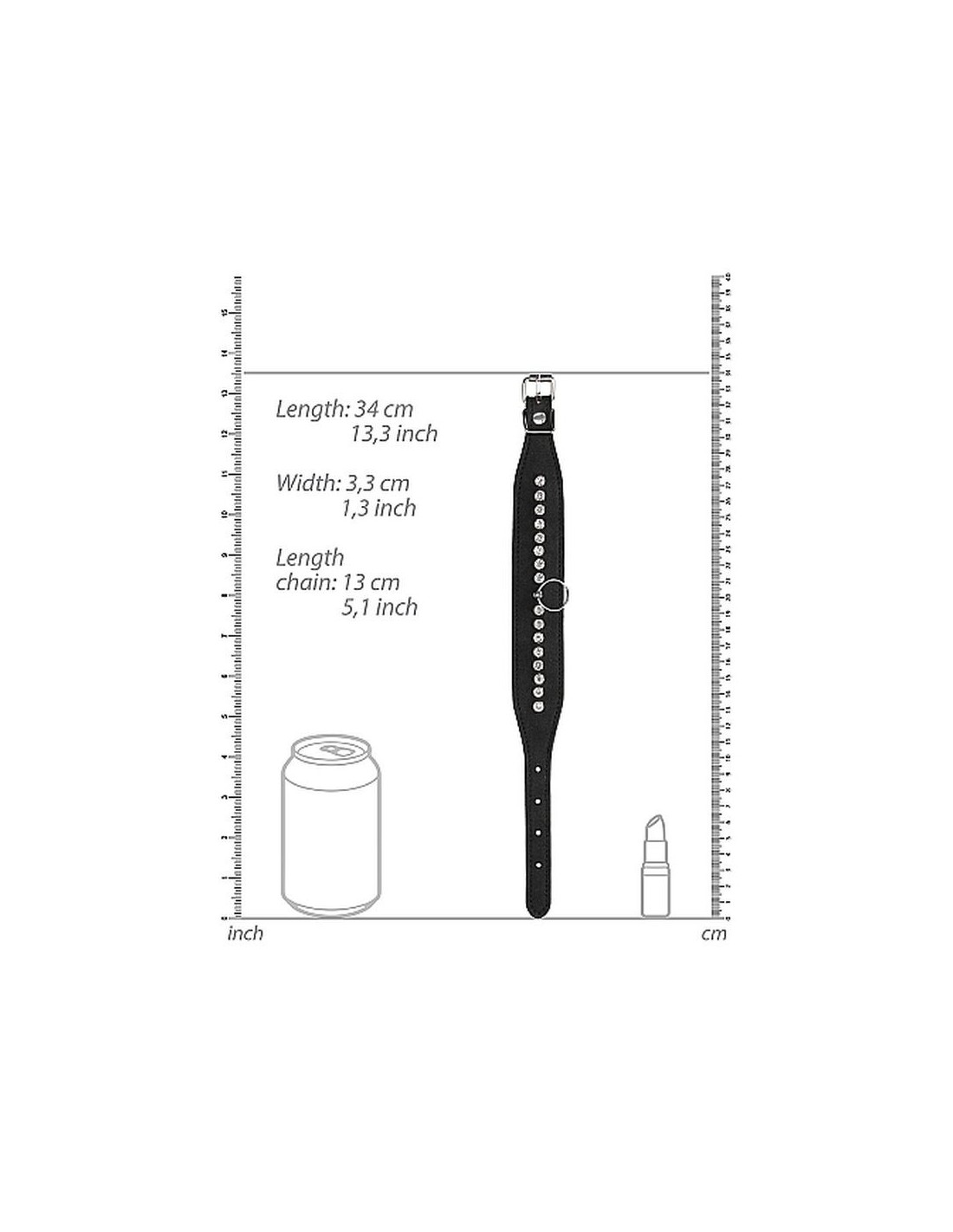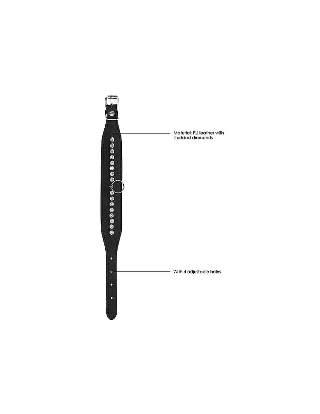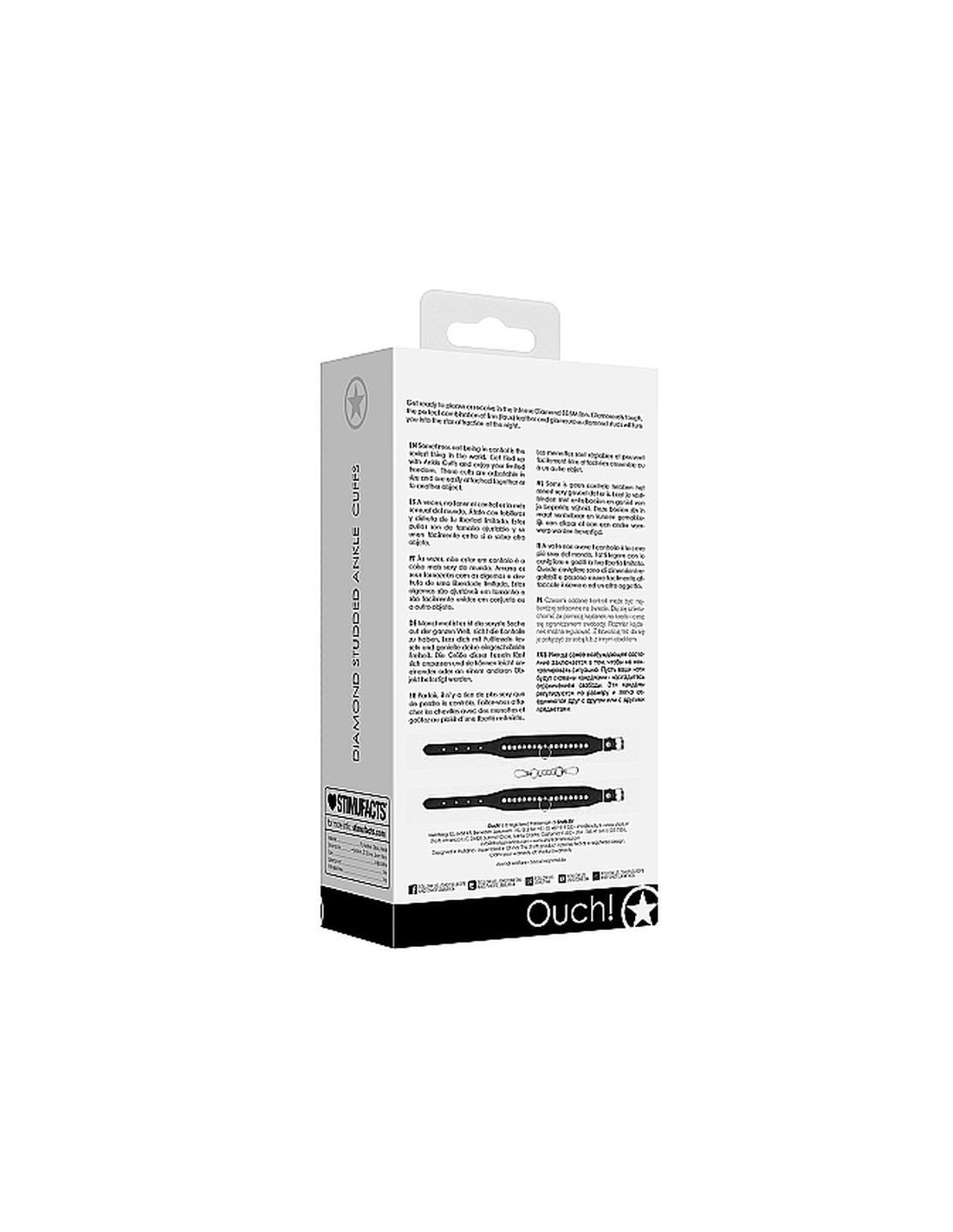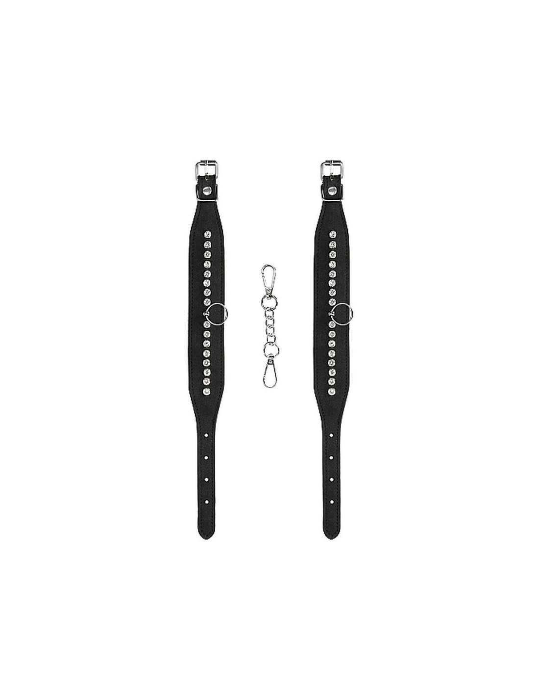 Preparati a dare piacere o riceverlo nell'intensa linea BDSM Diamond. Resistente e alla moda, la perfetta combinazione di solida (finta) pelle e borchie di diamanti eleganti ti trasformerà nell'attrazione principale della notte. A volte non avere il controllo è la cosa più sexy del mondo. Fatti legare con le cavigliere e goditi la tua libertà limitata. Queste cavigliere sono di dimensioni regolabili e possono essere facilmente attaccate insieme o ad un altro oggetto. L'aggiunta perfetta ad un problema molto eccitante: è ora di liberare il tuo lato oscuro. Dimensioni imballaggio: 9 x 5 x 17 cm Peso imballaggio: 150 grammi Misure Prodotto: 35 x 0,4 x 3,5 cm Materiale: PU Leather, Foam, Metal