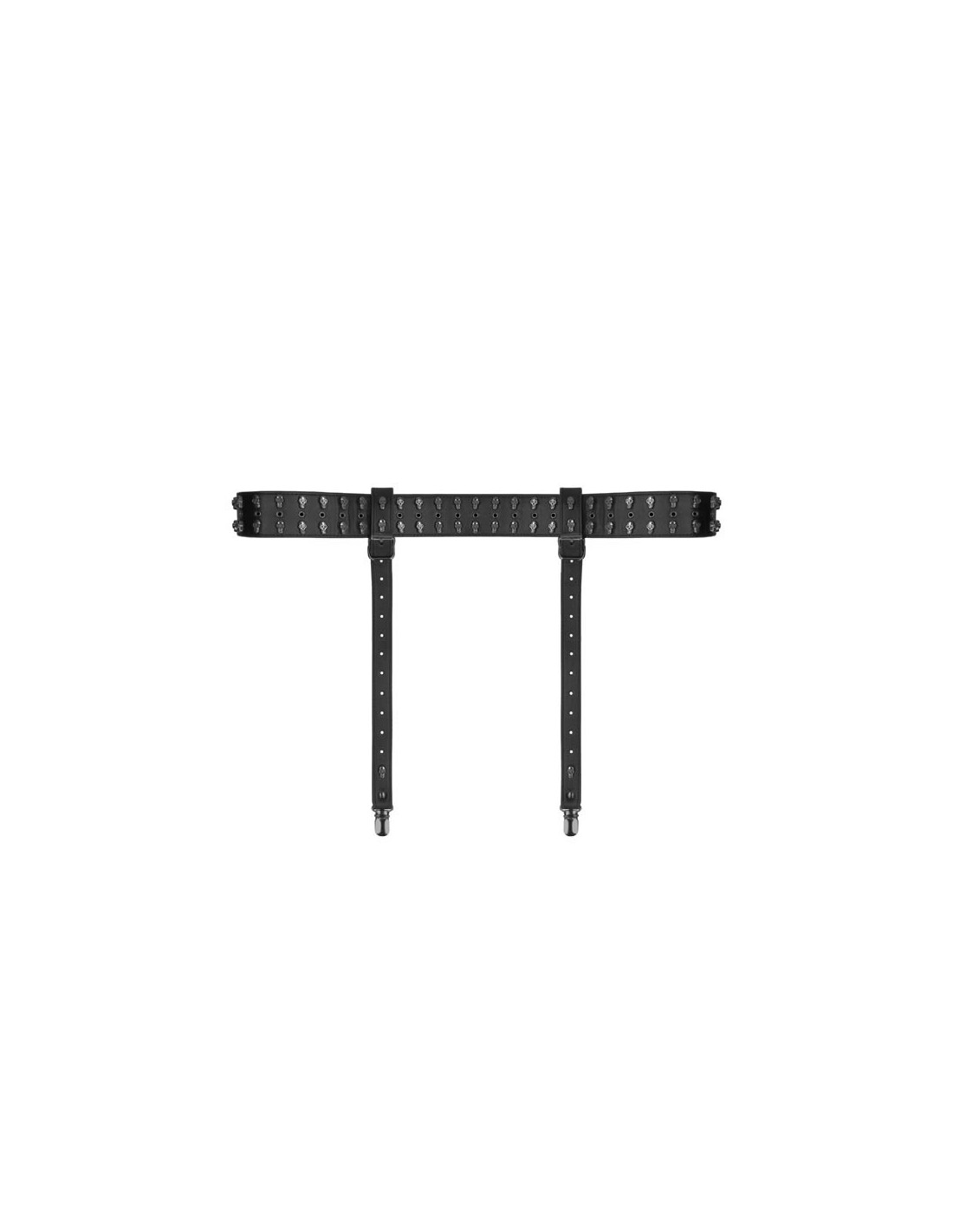 Tutti sanno che una giarrettiera nera è incredibilmente sexy, quindi perché non aggiungere un tocco in più? La giarrettiera in similpelle nera di alta qualità presenta delle decorazioni con teschi ed è un accessorio stupendo per il guardaroba fetish. Mostra chi è al potere con questo stupendo articolo di lingerie e mettili al loro posto.