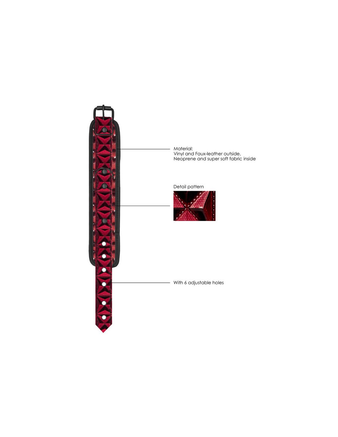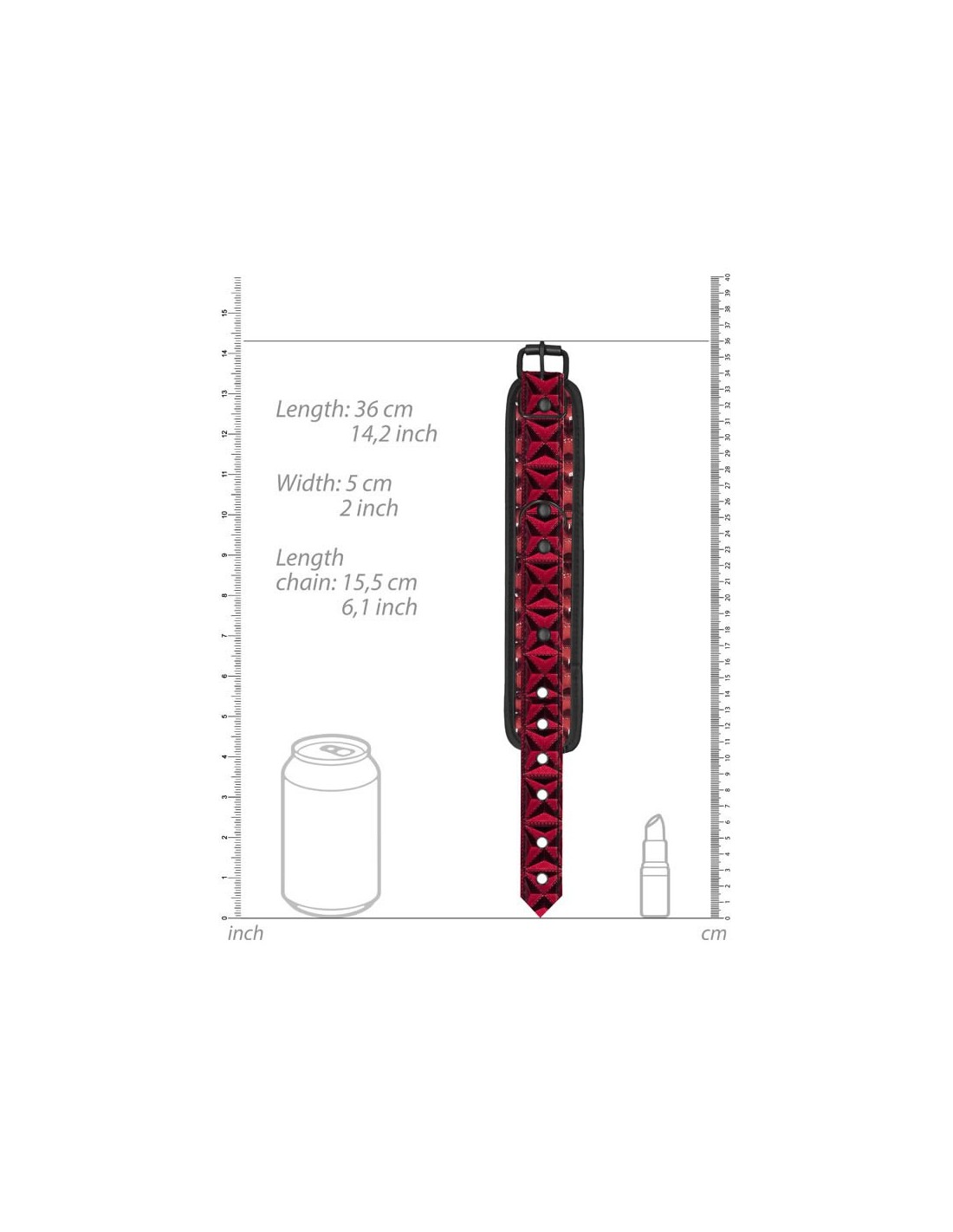 Arricchisci il tuo gioco BDSM con queste manette eleganti ma super resistenti! Grazie a 6 fori regolabili, garantiranno sempre una presa sicura e comoda e misurano da 21 cm (8.3") a 31 cm (12.2"). La spessa catena nera di collegamento misura 15,5 cm (6.1") e presenta una chiu- sura a moschettone che permette una semplice chiusura ed apertura. Grazie allo stile alla moda, queste manette in neoprene e finta pelle saranno stupende in ogni collezione BDSM! Dimensioni imballaggio 20 x 10 x 5 cm Peso imballaggio 240 grammi Misure Prodotto 36 x 5 x 1 cm Peso Prodotto 216,00 grammi Privo di Ftalati Sì Materiale Vinile, ecopelle e neoprene