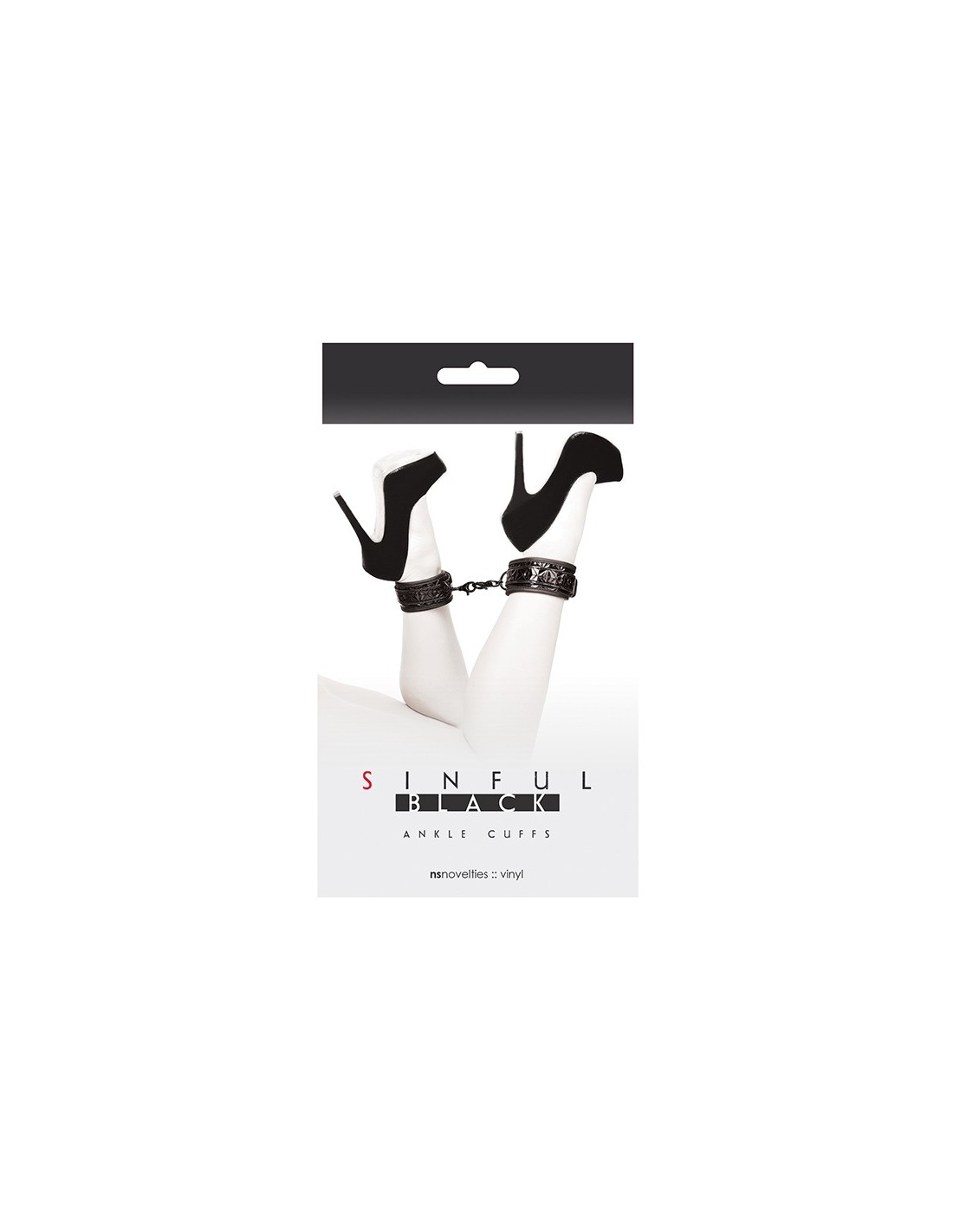 Sinful has been THE name in affordable playful kink in pink. Now, Sinful just made ‘sexy’ a little bit sexier! NS Novelties is excited to introduce Sinful: Black. Everyone’s favorite collection is now available in a stunning midnight black finish while continuing to deliver the quality you expect. , Black, nickel-free anodized hardware, , aesthetically striking embossed vinyl, and lined in soft yet durable liquid-play friendly neoprene. This sexually neutral collection includes: , fully adjustable wrist cuffs, ankle cuffs and collar &, leash featuring , quick release hardware, playful vinyl and leather “soft bite” whip, a full sized paddle with a wrist or hang loop, a comfortable elastic blindfold, and an adjustable breathable ball gag.