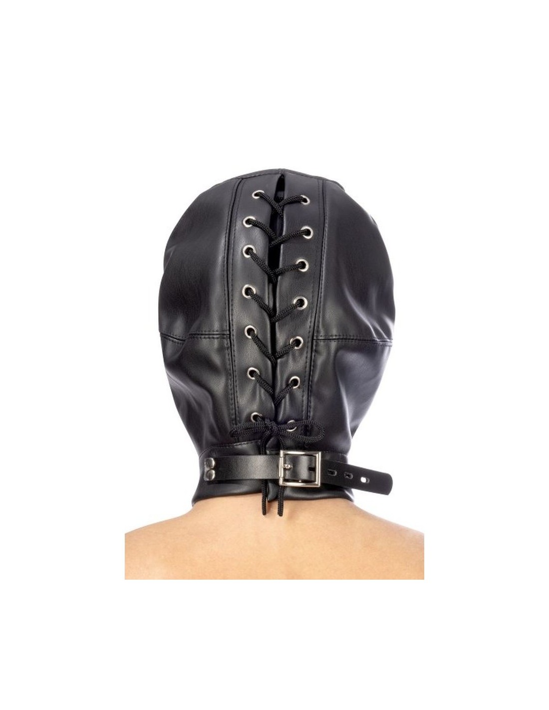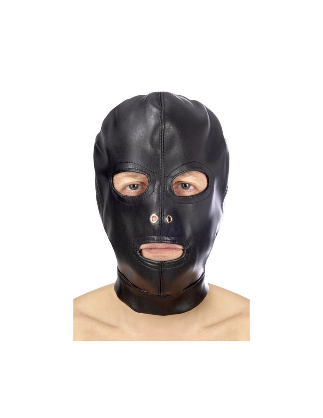Cagoule yeux bouche sangle lacet Fetish Tentation Dal marchio Fetish Tentation, questo cappuccio completo lascerà gli occhi e la bocca liberi. Una sottomissione totale per giochi erotici in un materiale confortevole che non impedirà la respirazione grazie ai piccoli fori. Questo cappuccio fetish si chiude sul retro con un cinturino con fibbia e allacciatura. - Materiale Ecopelle - Peso 30gr - Circonferenza minima del collo 18/24 cm - Larghezza minima della circonferenza della testa 27/29 cm - Lunghezza 32 cm - Piccoli fori respiratori