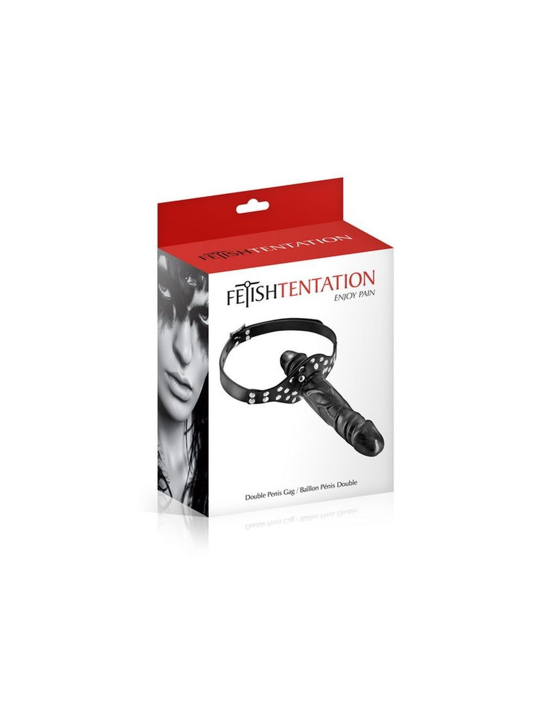 Di Fetish Tentation, questo bavaglio con doppio dildo nero. Due dildo neri realistici (uno che penetra e l'altro che entra) per dare piacere sotto costrizione. Regolazione della circonferenza della testa e decorazione fetish con rivetti in metallo. - Scatola in mm: 170 x 75 x 75 - Peso 192 gr - regolazione da 45 a 60 cm - Dildo esterno 130 x 30 mm - Dildo interno 50 x 30 mm - TPE, poliuretano, lega, senza ftalati