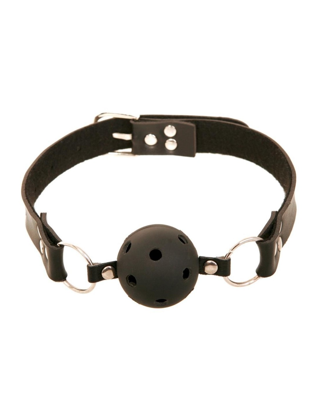 Questo bavaglio è lo strumento giusto per giochi di lussuria e sottomissione. La palla di gomma dura a prova di morso è dotata di fori per la respirazione e garantisce silenziosi momenti di piacere con un sufficiente apporto di aria. La cinghia per la testa in finta pelle può essere regolata in base alle dimensioni della testa grazie alla fibbia di chiusura.