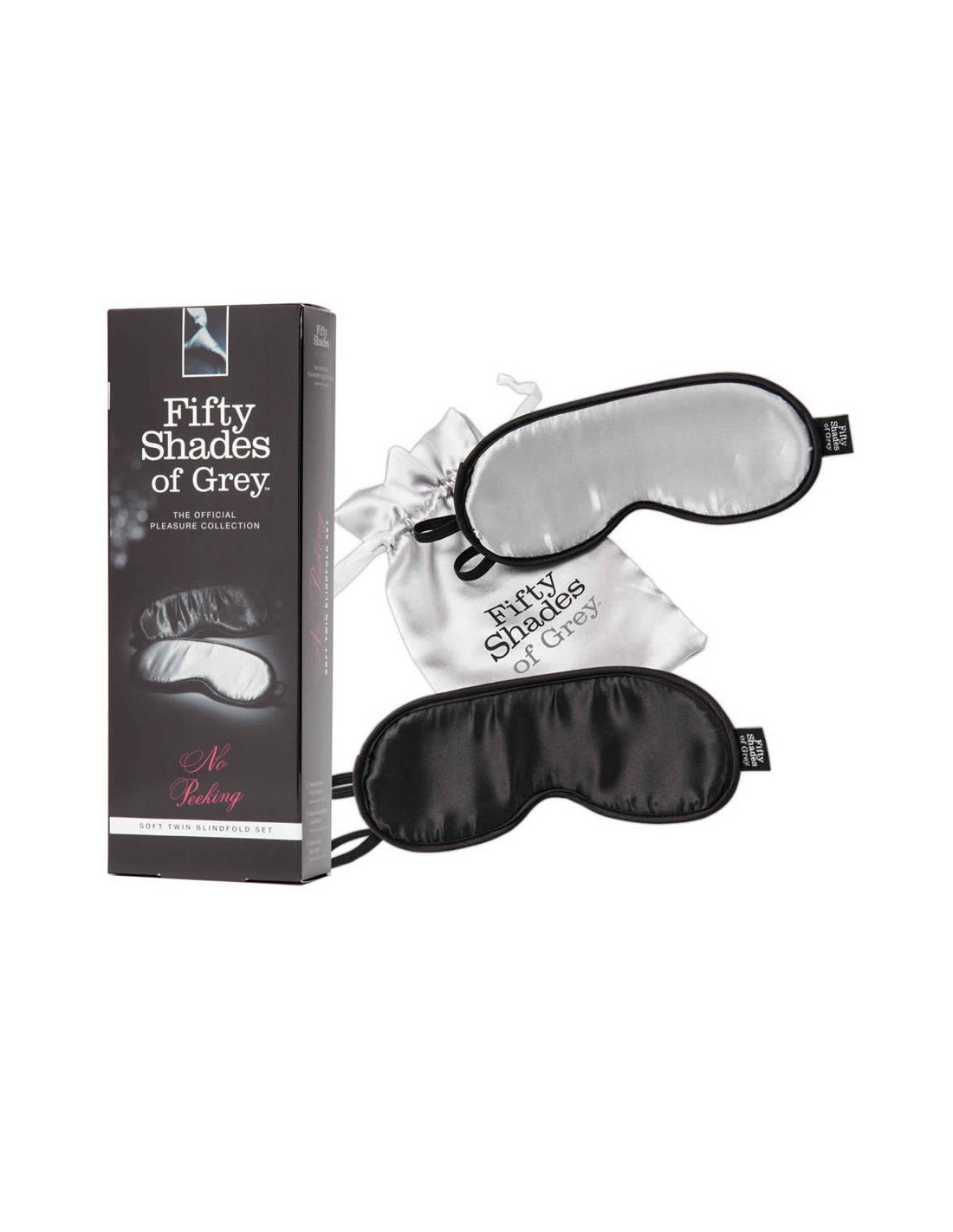 Official Fifty Shades of Grey Pleasure Collection. Two luxury blindfolds, one silver and one black, ideal for couples who want to introduce light bondage play and excitement to the bedroom. Heighten your senses and enhance sensory anticipation with these soft, sensual and effective bedroom bondage accessories. Includes a satin storage bag. Black/silver-coloured. Length 19 cm. Material: satin, faux fur.