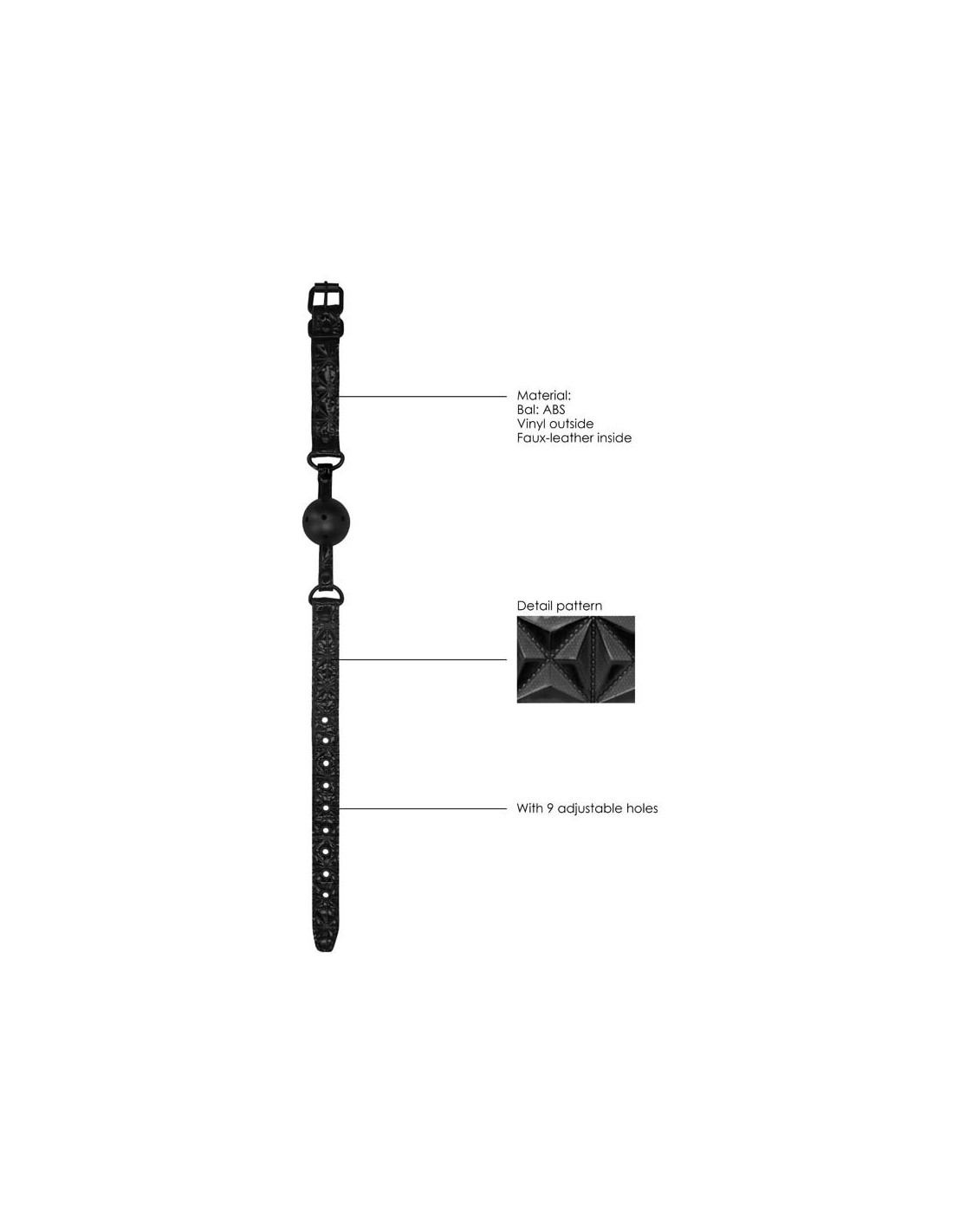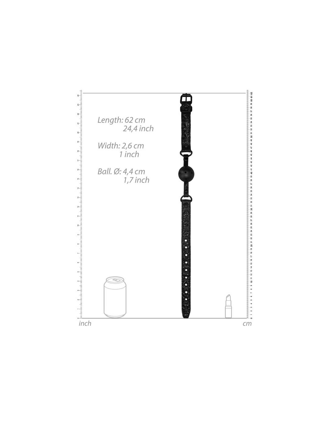 Fai tacere il tuo partner con questa Ball Gag di OUCH!, perfetta per principianti ed esperti. Questa ball gag priva di ftalati presenta anelli ad O in metallo e una chiusura con 9 fori per una facile regolazione. Misura 62 cm (24.4") in lunghezza e 2,5 cm (1.74") in larghezza. La sfera ha un diametro di 4,4 cm (1.74"). Realizzata in neoprene e finta pelle, con una lavorazione a diamante Dimensioni imballaggio 17,10 x 9,20 x 5,10 cm Peso imballaggio 115 grammi Misure Prodotto 62 x 4,4 x 2,5 cm Peso Prodotto 88,00 grammi Diametro Prodotto 4,4 cm Privo di Ftalati Sì Specificazioni regolabili con 9 fori da 41-57 cm Materiale Vinile, Ecopelle, ABS