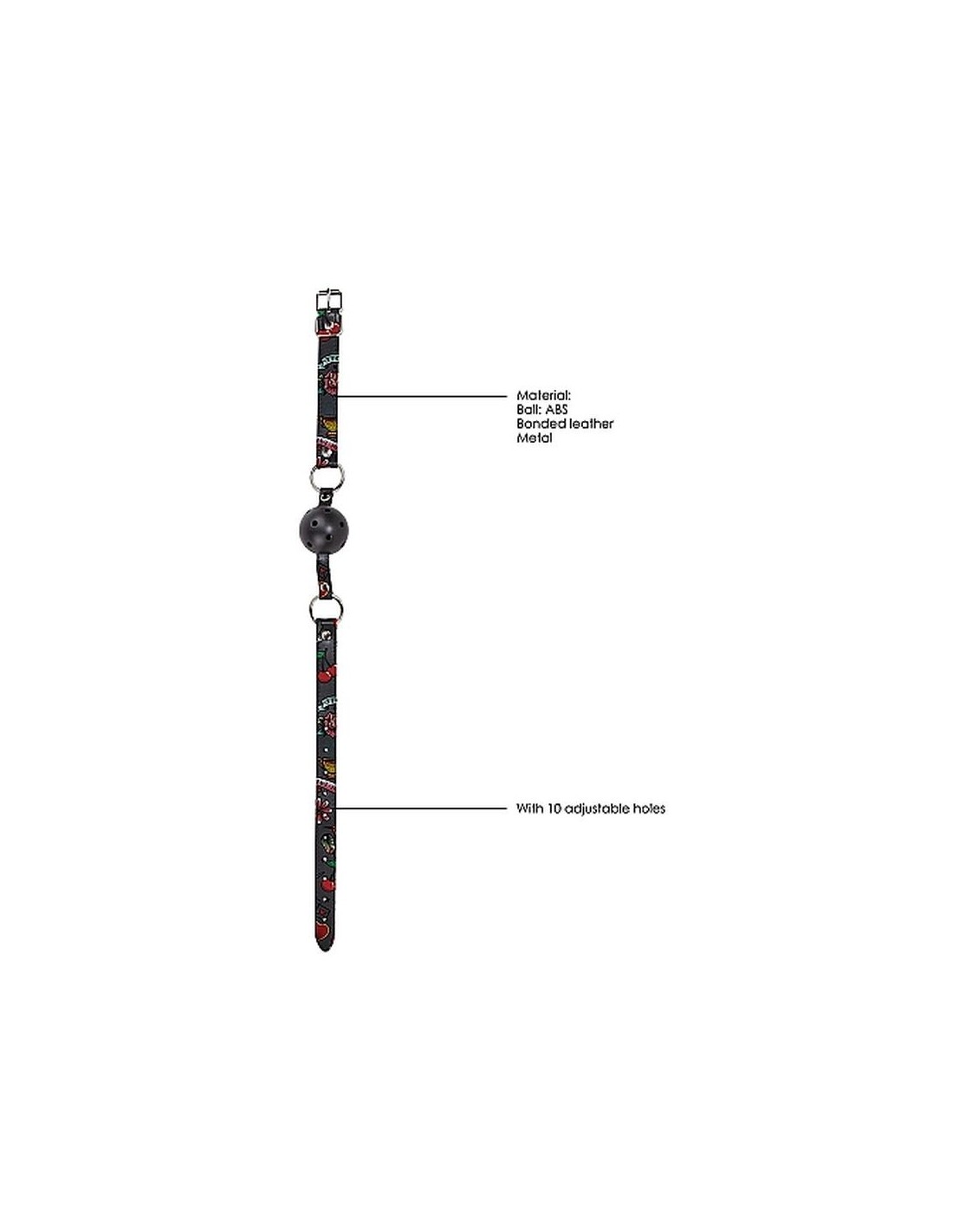 Breatheable Ball Gag - Old School Tattoo Style - Black Ti piacciono i giochi estremi? Tieni a bada il tuo amato con questo morso a forma di palla. Cinghie in ottima pelle, con eleganti cuciture su tutta la superficie. Dotato di 10 fori per regolare la lunghezza. Taglia unica. Usa il morso da solo o in combinazione con altri prodotti della Linea Ouch! Dimensioni imballaggio 17,10 x 9 x 5 cm Peso 77 grammi imballaggio Misure Prodotto 63 x 4,3 x 4,3 cm Peso Prodotto 44,00 grammi Diametro Prodotto 4,3 cm Privo di Ftalati Sì Materiale Cuoio Rigenerato, ABS