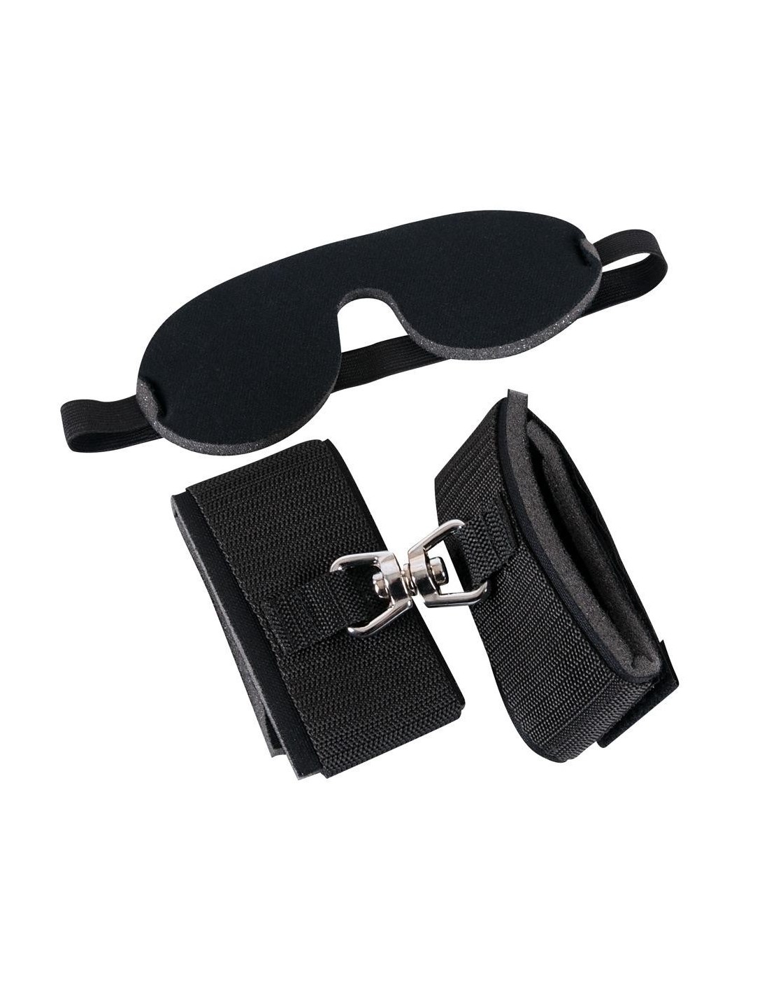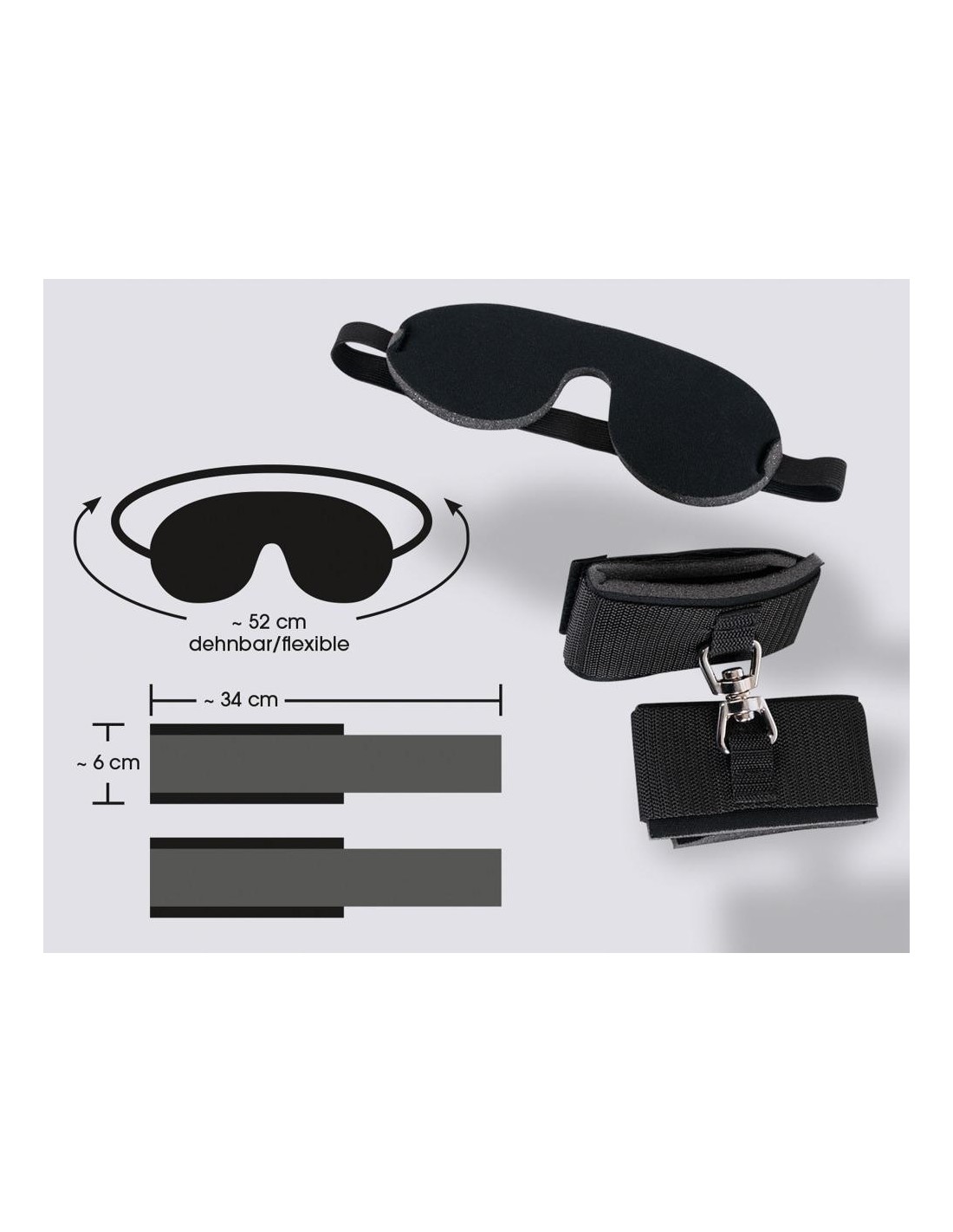 Manette imbottite con anello rotante in metallo al centro e chiusura in velcro. 1 benda imbottita con cinghia elastica è anche inclusa nel set. Perfetto per i principianti! Polsini aperti 34 cm di lunghezza, 6 cm di larghezza. 60% PP, 33% PE, 5% PU, 2% metallo. Tutte le parti metalliche sono cromate.