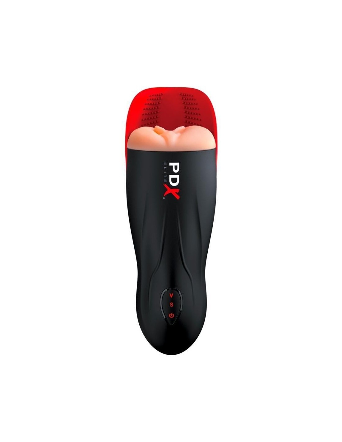Masturbatore con stimolatore di testicoli Fuck-O-Matic di PDX Elite in look vagina realistico con funzione di aspirazione ritmica (5 modalità) e vibrazione (10 modalità) per un massaggio intensivo del pene che include subito i testicoli. 2 potenti motori - uno nella punta, uno nello stimolatore del testicolo - possono essere comodamente controllati con il tocco di un pulsante e le loro funzioni possono essere combinate.