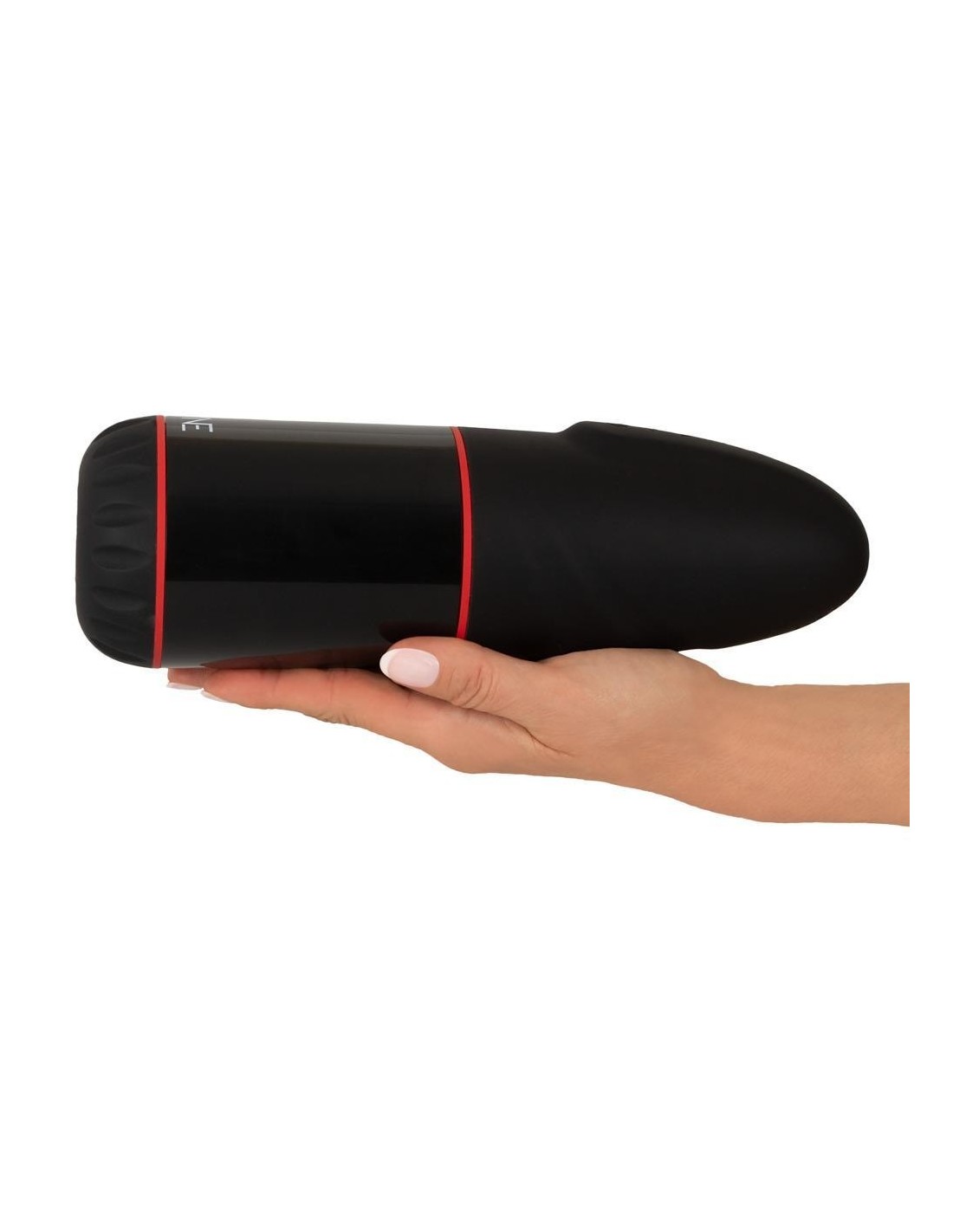 Doppio masturbatore motorizzato 02 di WYNE, che coccola intensamente il pene con 10 modalità di vibrazione e 3 di aspirazione. In più, i gemiti sexy a 3 volumi tramite le cuffie incluse riscaldano la situazione. Tutte le funzioni possono essere controllate separatamente o combinate comodamente premendo un pulsante direttamente sul pratico toy.